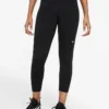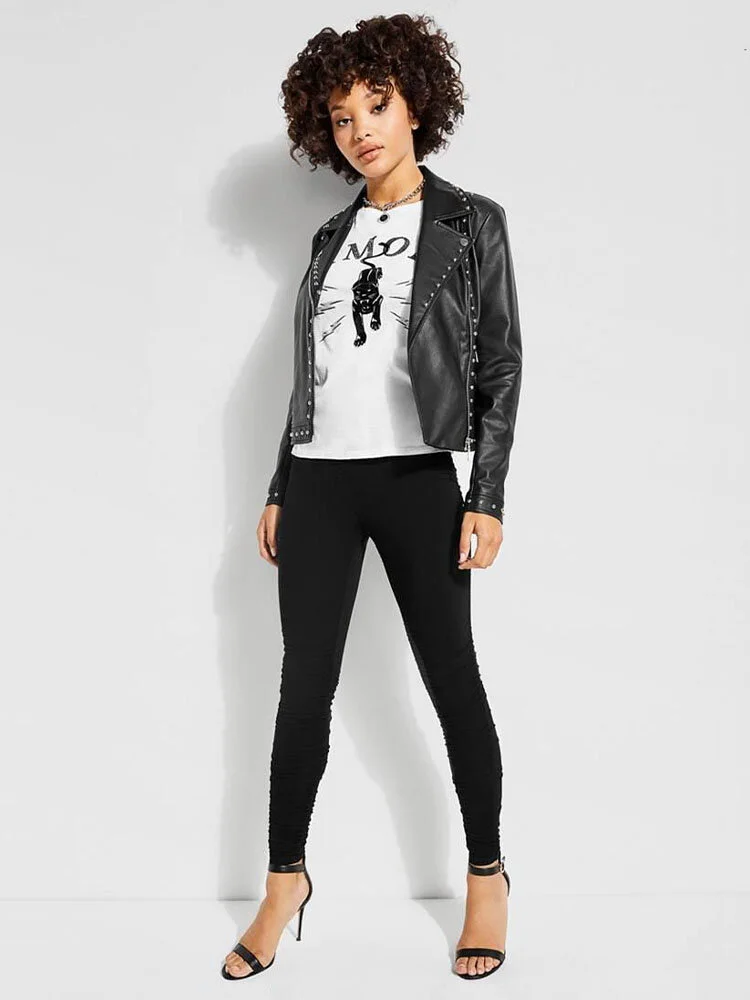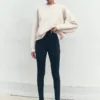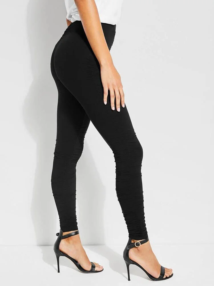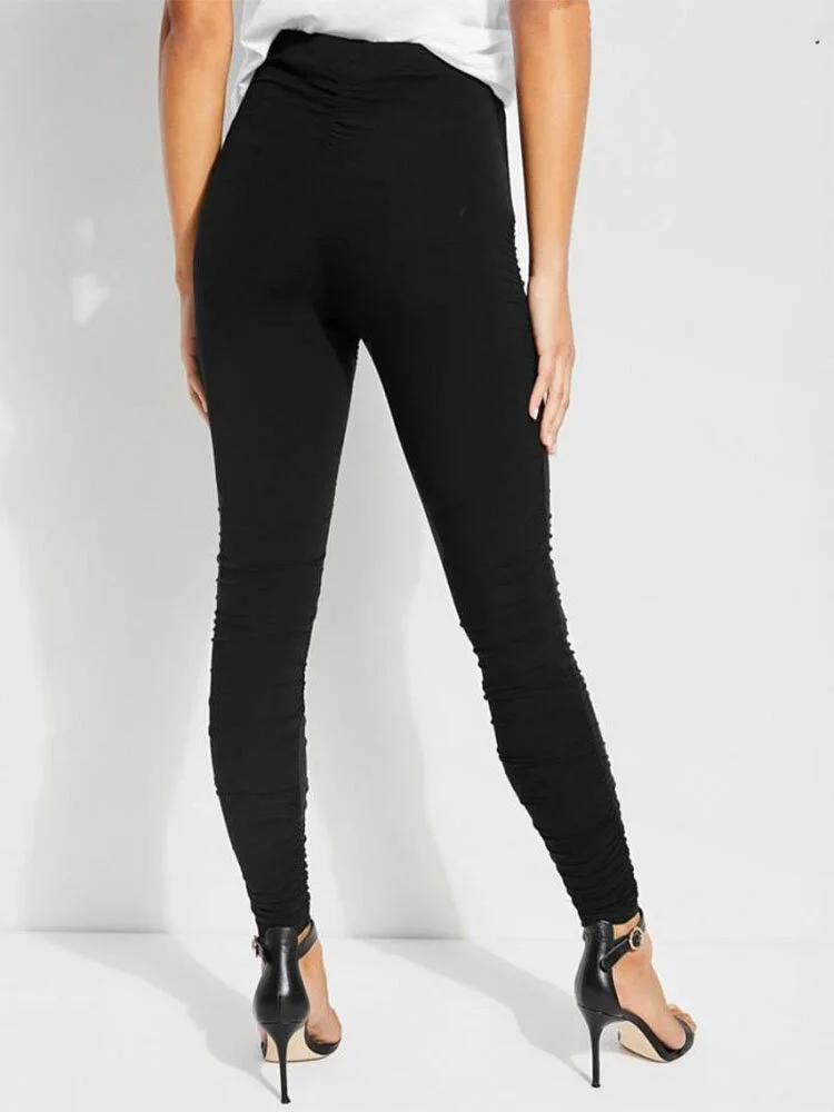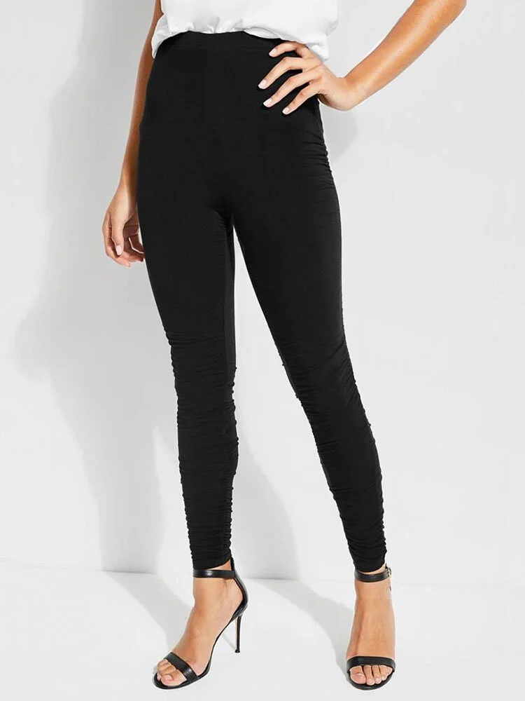 Leggings negros de algodón fruncidos a lo largo de los lados y con cintura alta.