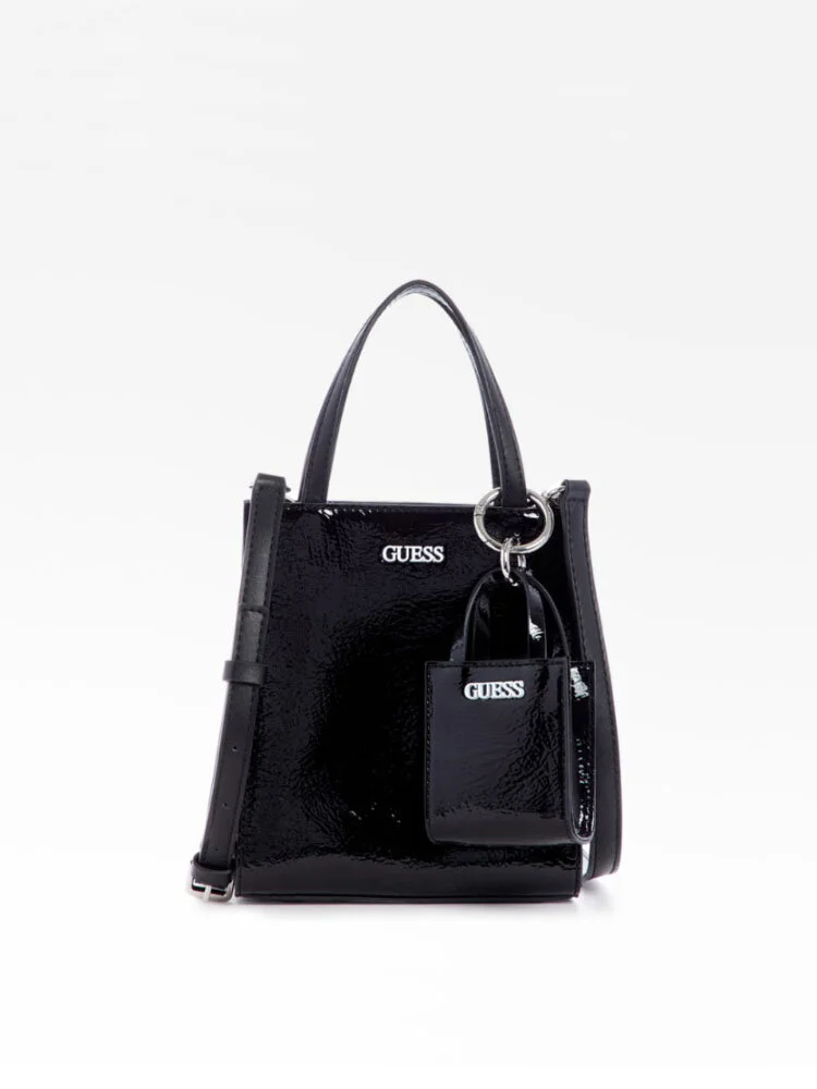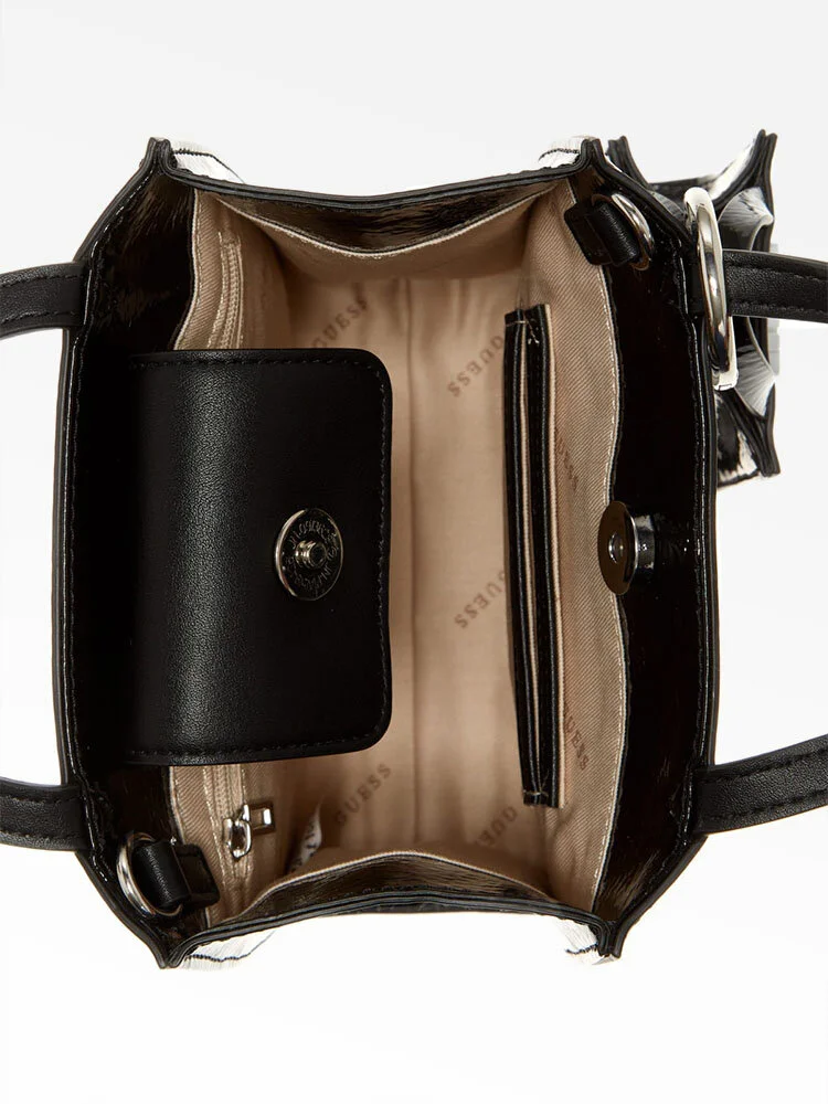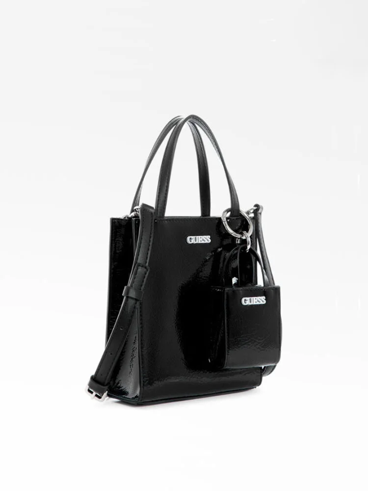Diseñado con un modelo moderno, este elegante minibolso de piel sintética presenta un logotipo en contraste y un llavero de tarjetero extraíble en las correas de los hombros.
