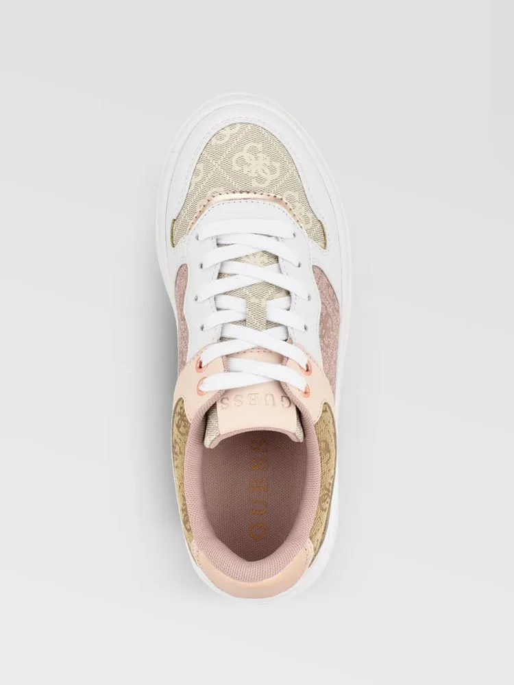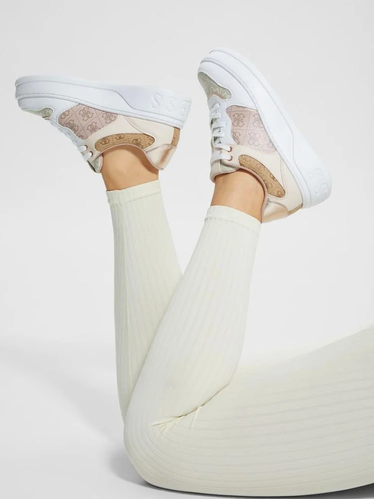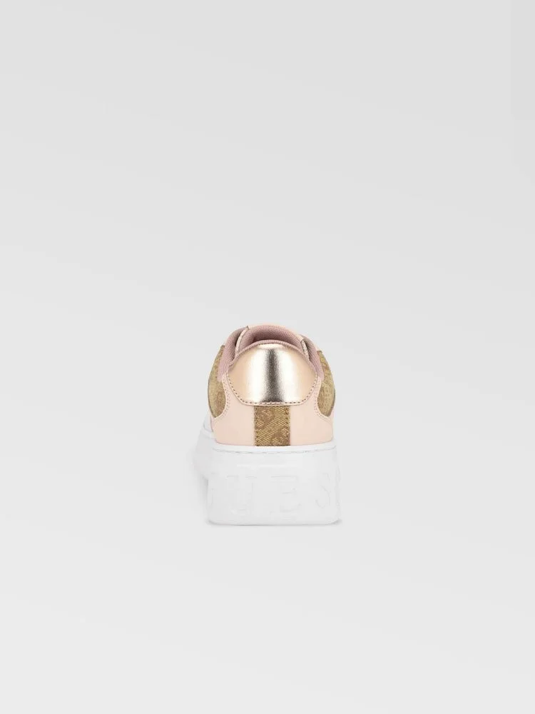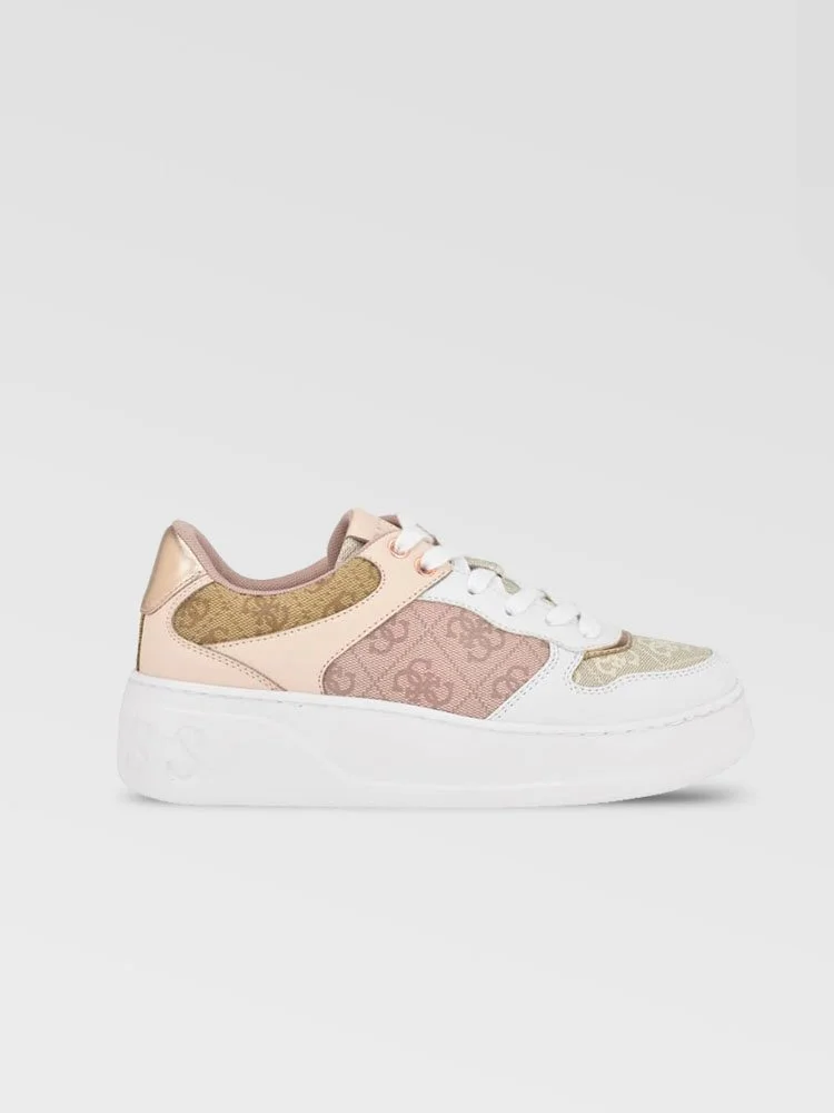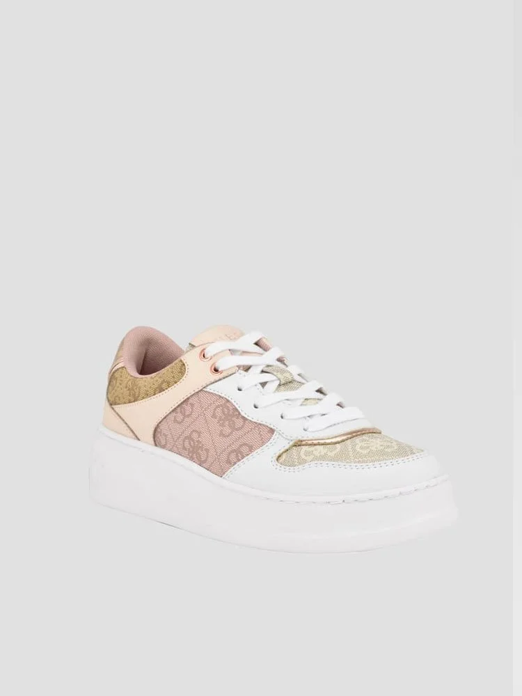 Refina tu look casual con estas zapatillas femeninas de piel sintética diseñadas con estampado de logotipo de la marca, cierre de cordones y suela de plataforma ligera.