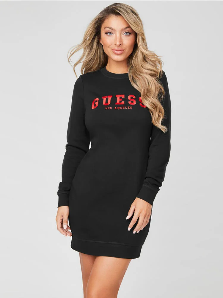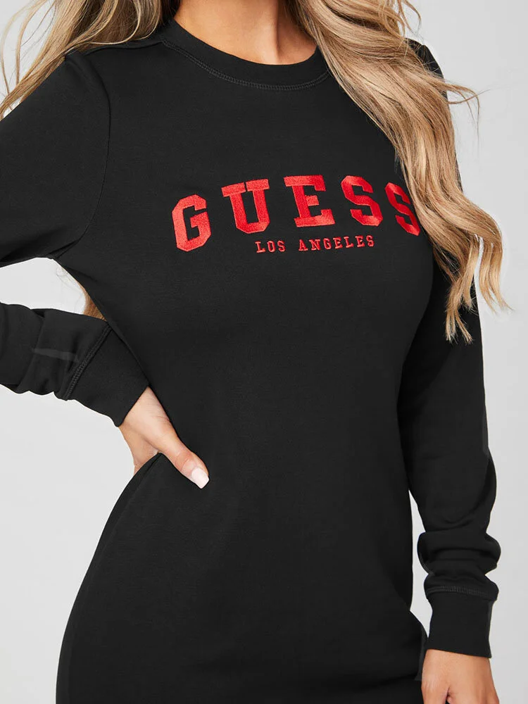 Para cuando te quieras lucir un poco deportiva, este vestido estilo suéter con cuello redondo de mangas largas y un diseño de logo bordado es el ideal para un outfit fresco, ligero y sensual.