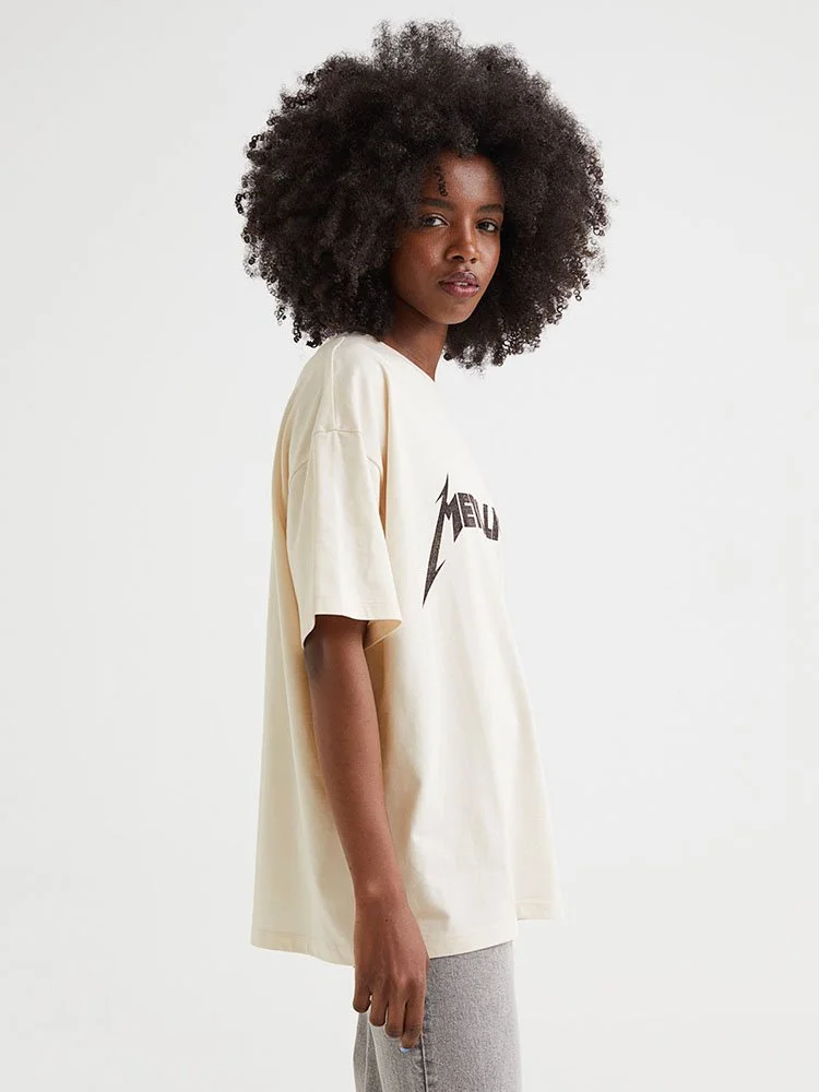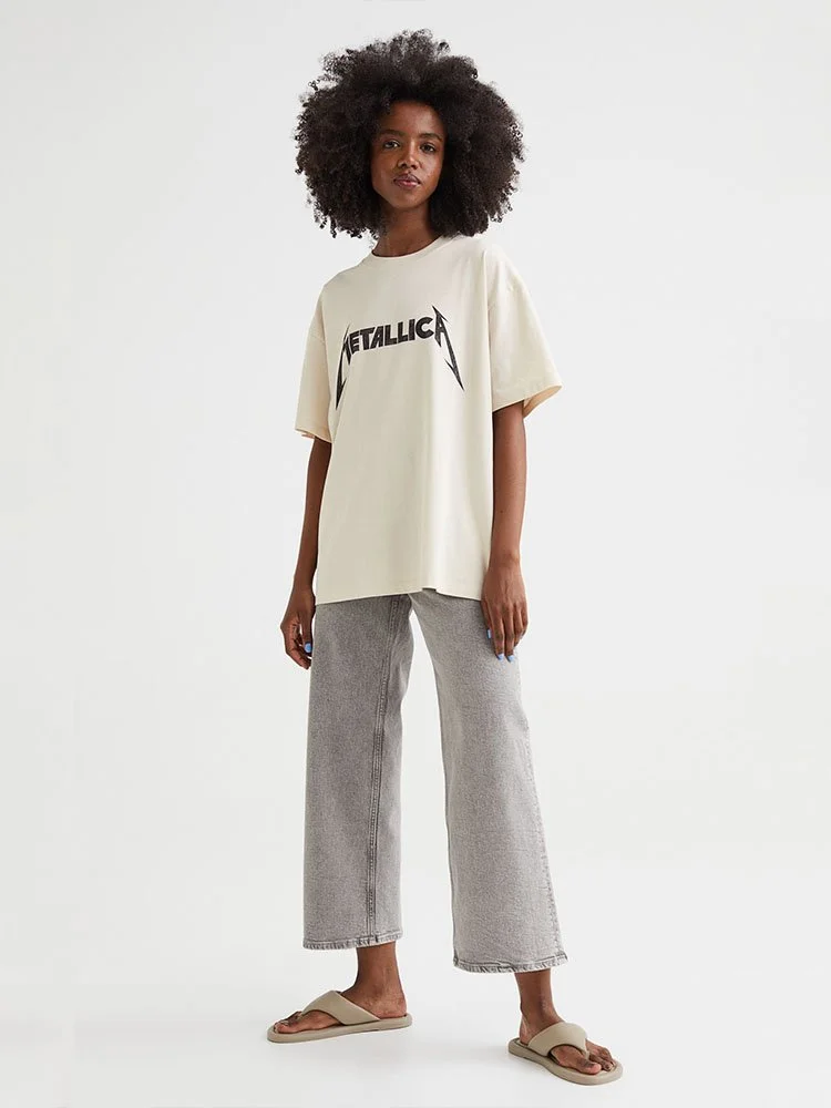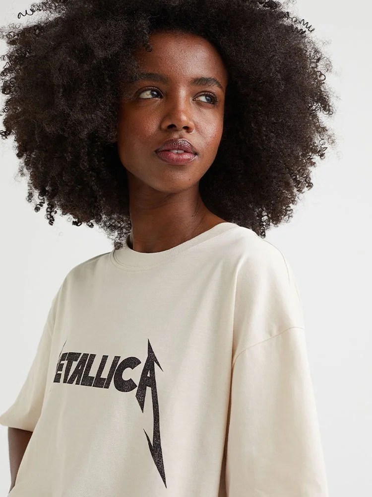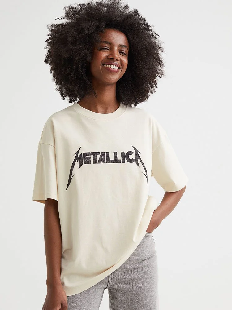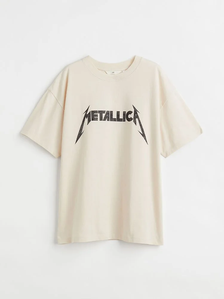 T-Shirt modelo oversize en punto suave de algodón con motivo estampado delantero alusivo al grupo de rock Metallica. Modelo con cuello acanalado redondo y hombros ligeramente caídos.