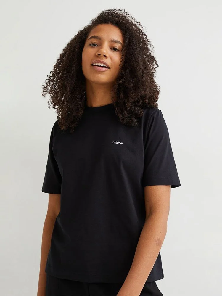 T-Shirt de algodón suave. Manga corta, con estampado frontal bordado de la palabra “Original”.