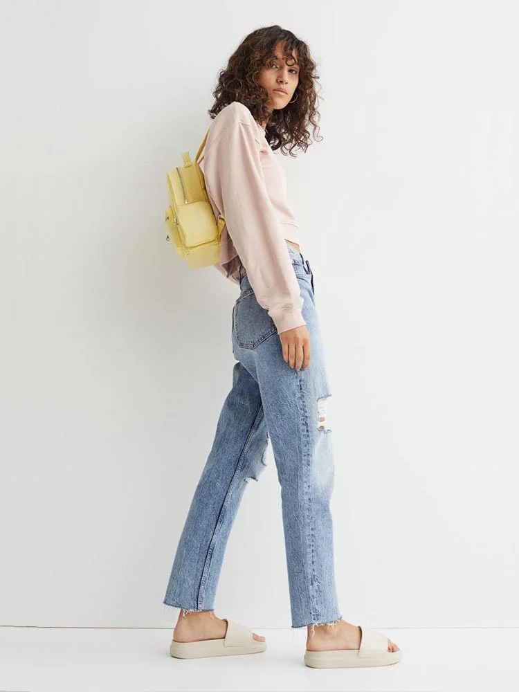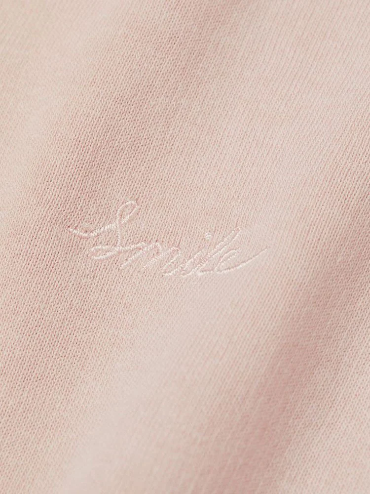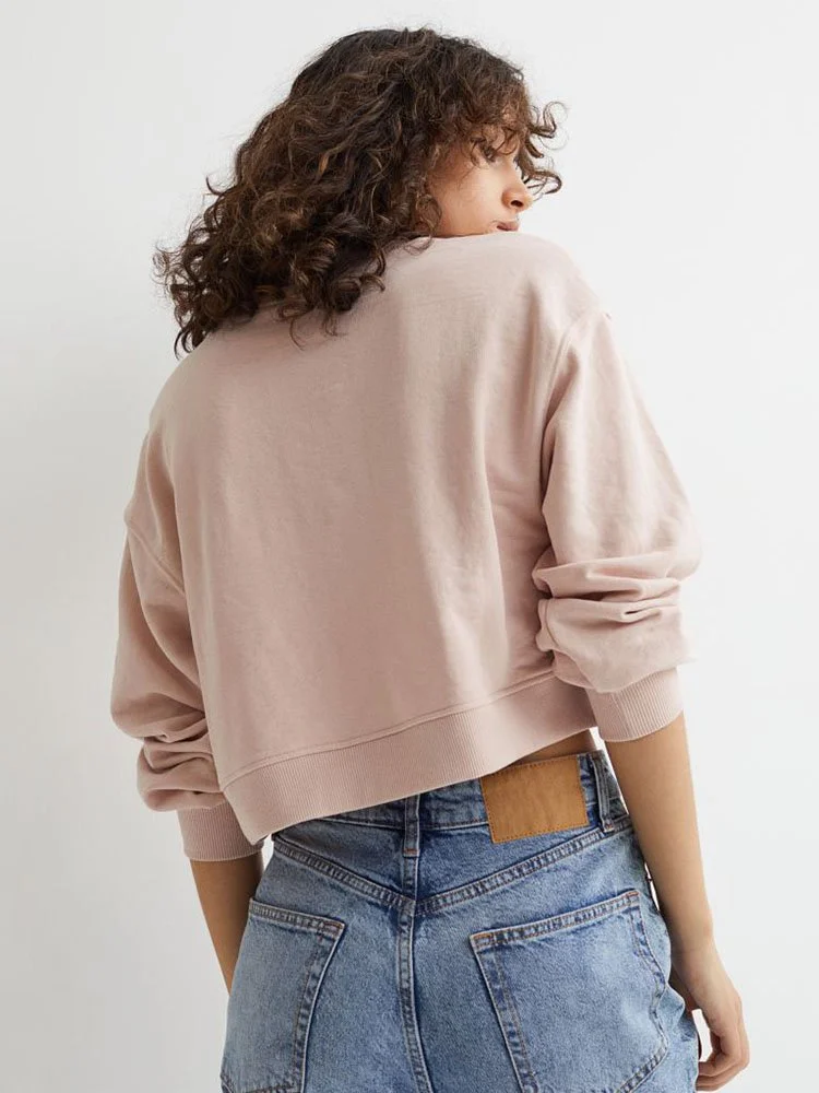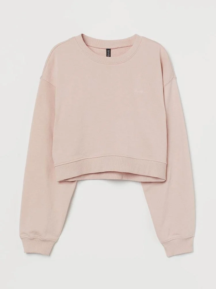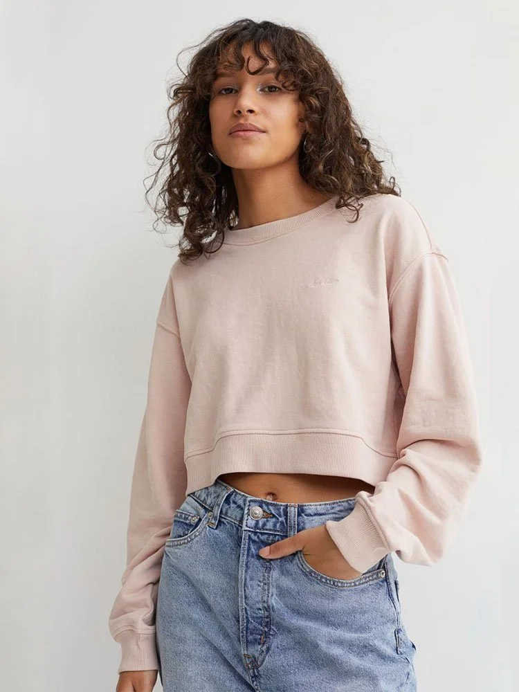 Sweater modelo corto y suave con detalle bordado en la parte superior con la palabra “Smile”. Cuello redondo, hombros caídos y manga larga. Canalé en escote, puños y bajo.