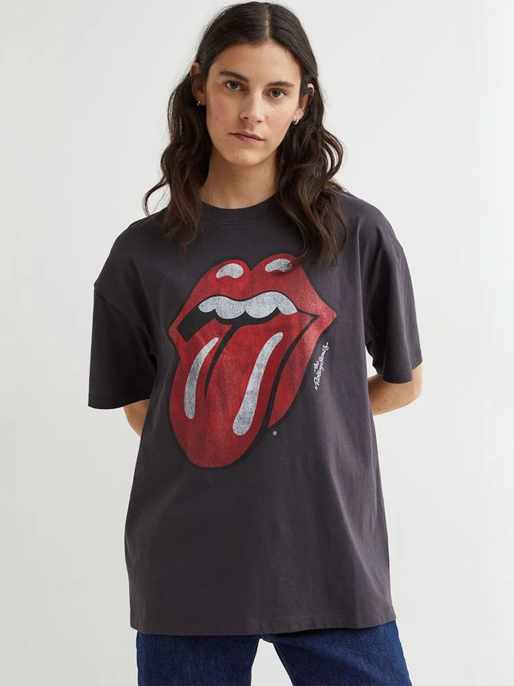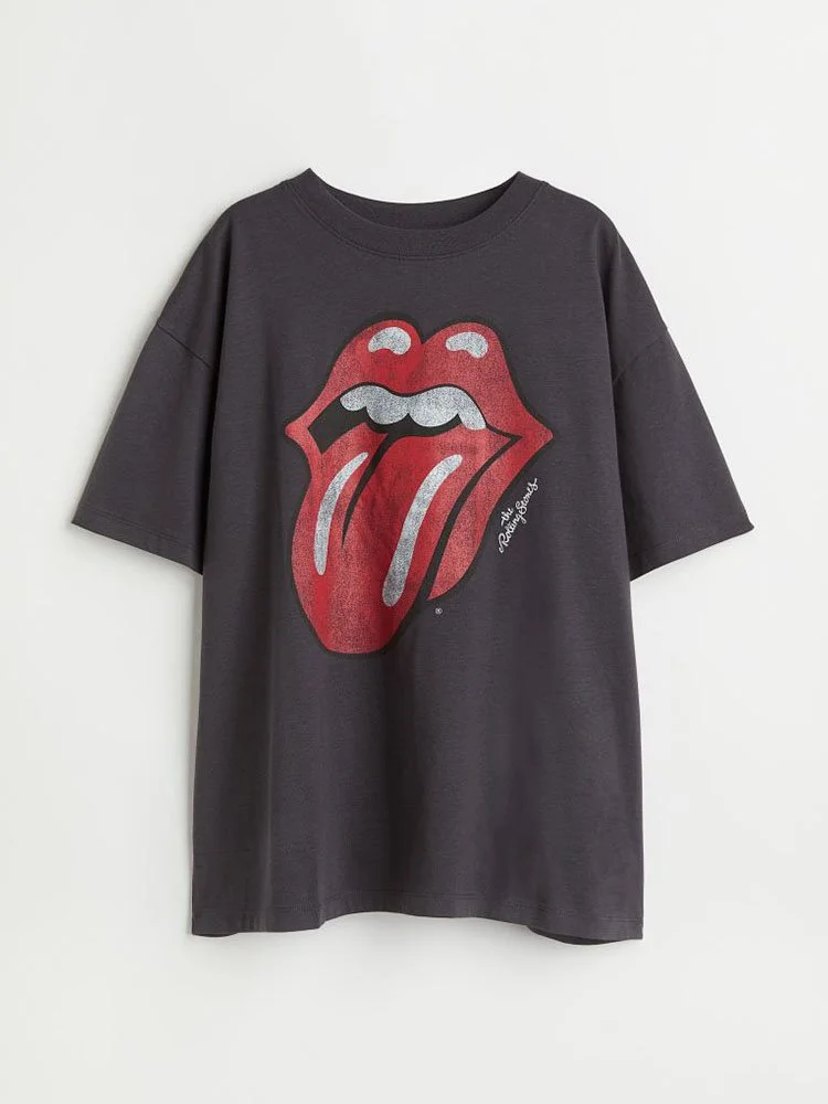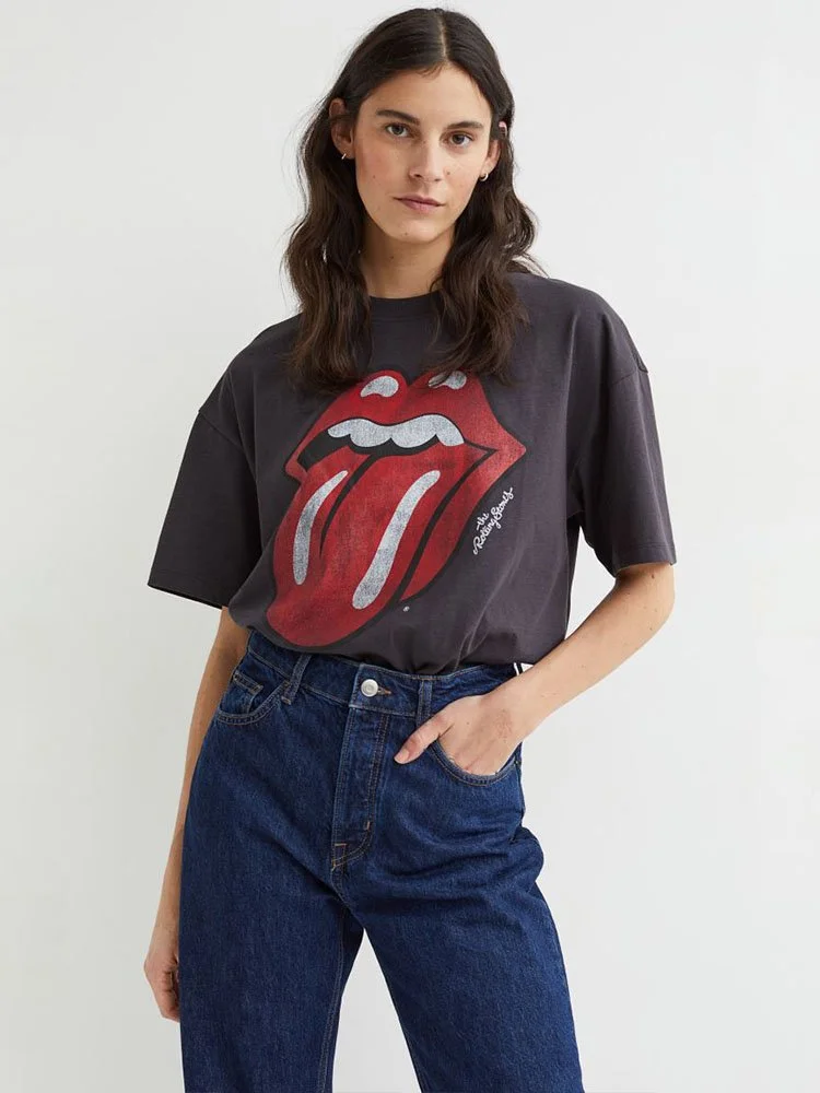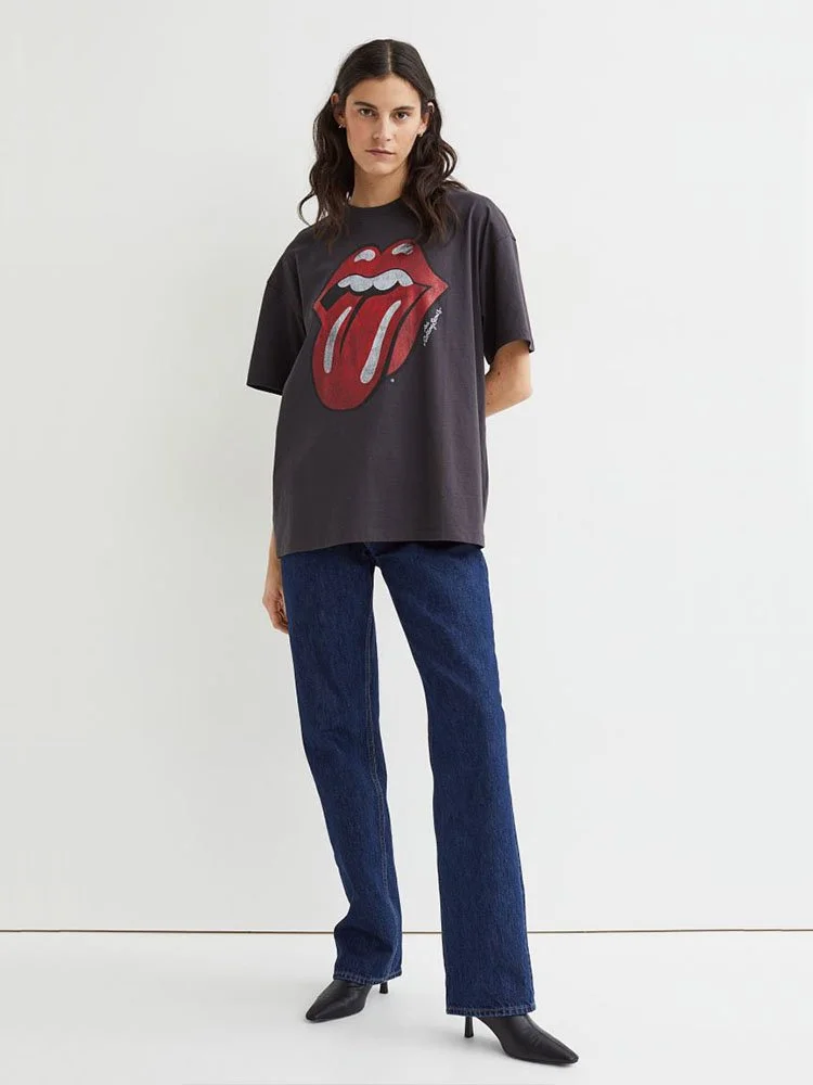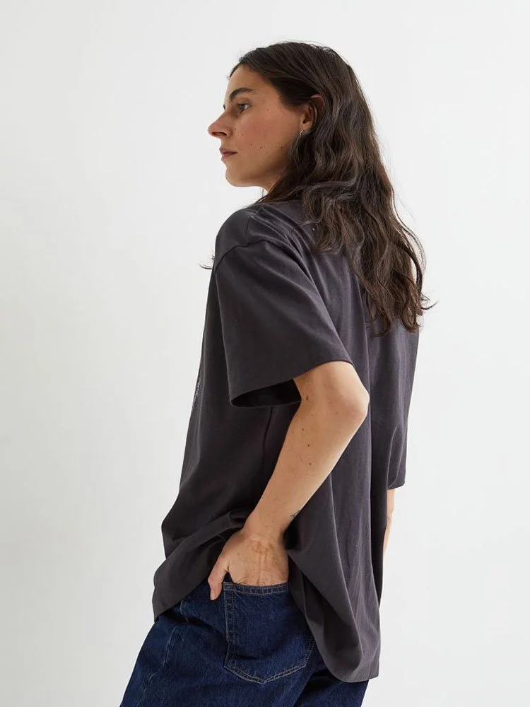 T-Shirt oversize suave de algodón con diseño gráfico estampado delante. Cuello redondo acanalado y hombros suavemente caídos.