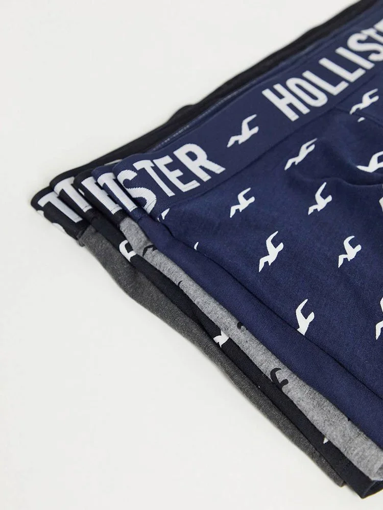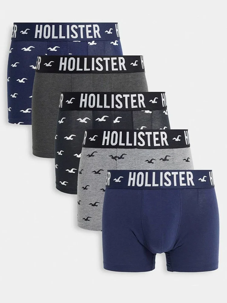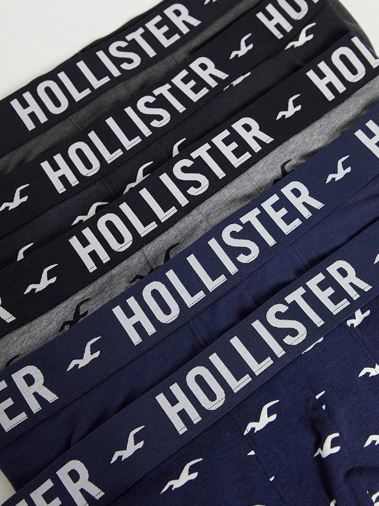 Paquete de cinco intimas de la marca Hollister con estampado de logo en toda la prenda, cintura elastizada con la marca y corte ceñido al cuerpo.
