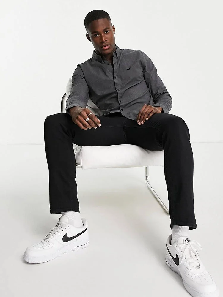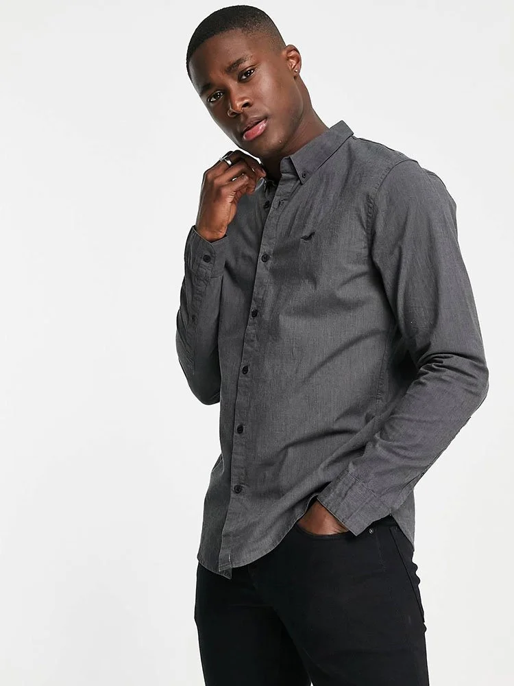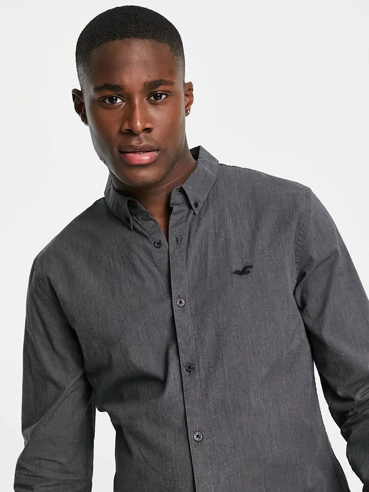 Camisa con diseño de cuello abotonado, tapeta con botones, logo bordado en el pecho, mangas largas y corte regular.