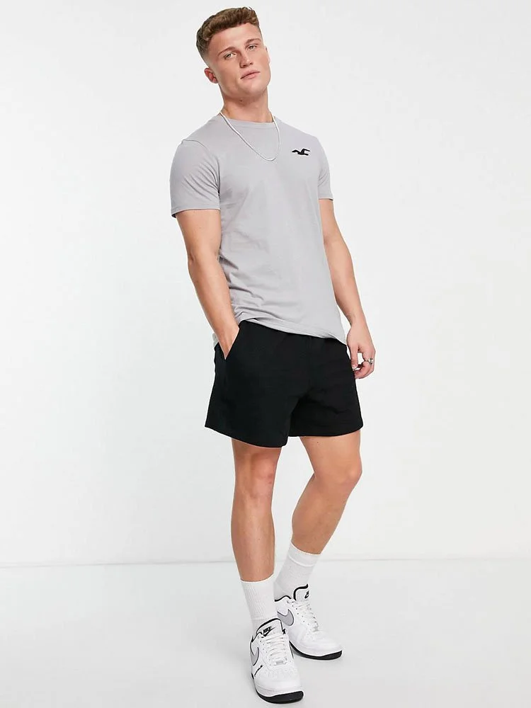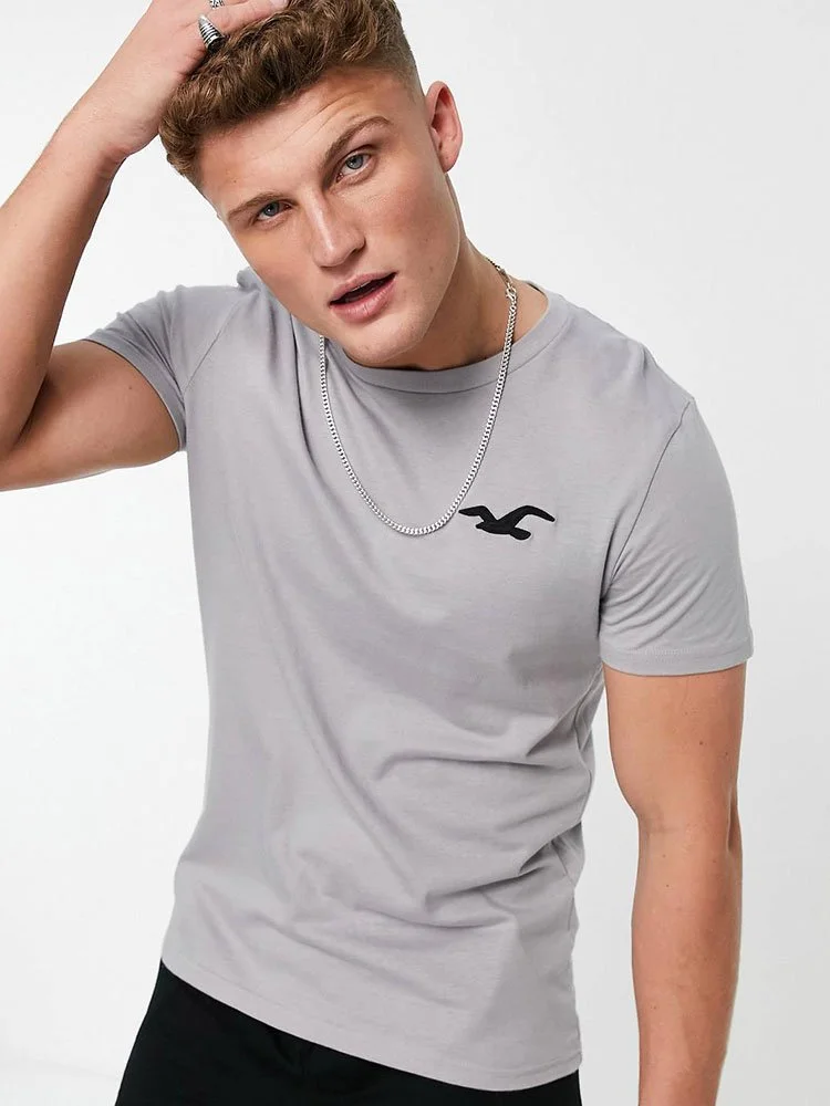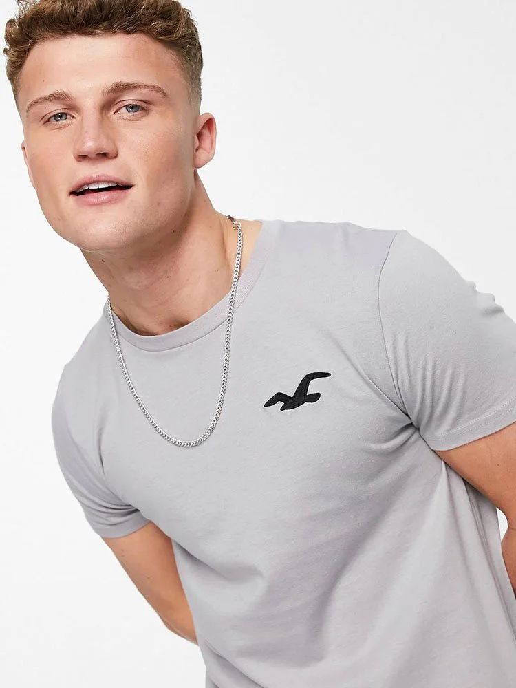 T-Shirt de la marca Hollister con cuello redondo, manga corta y logo bordado en el pecho.