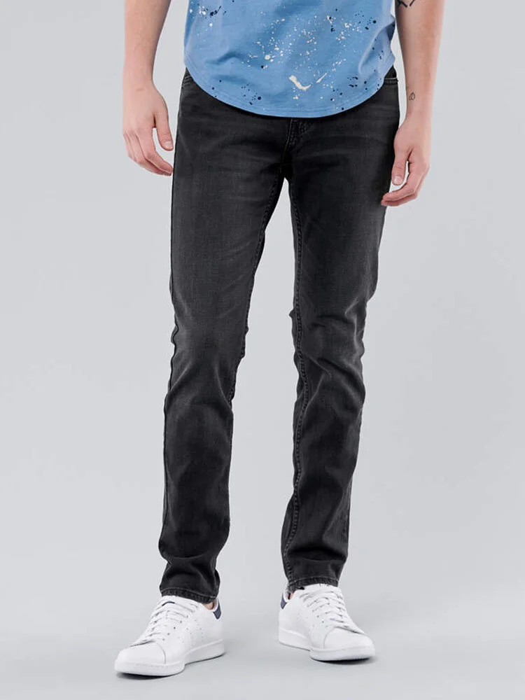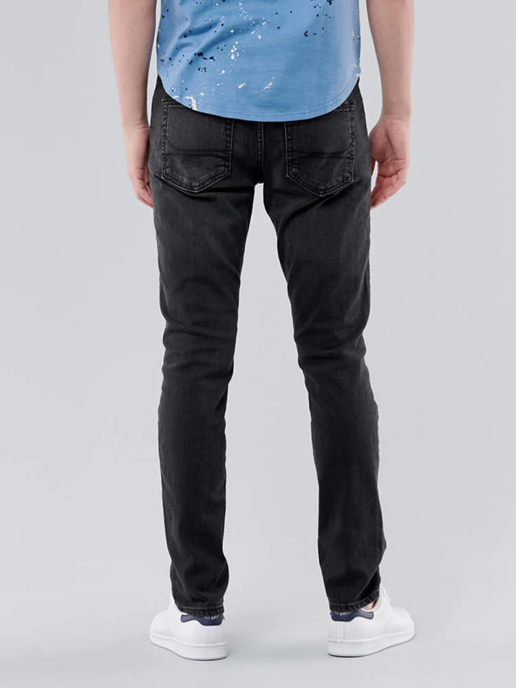 Diseñados con corte ajustado en la cadera y los muslos, con abertura de la pernera de 13″, estos jeans negros tienen la elasticidad de Hollister Epic Flex, decolorado, diseño de cinco bolsillos y bordado al tono en el bolsillo trasero.