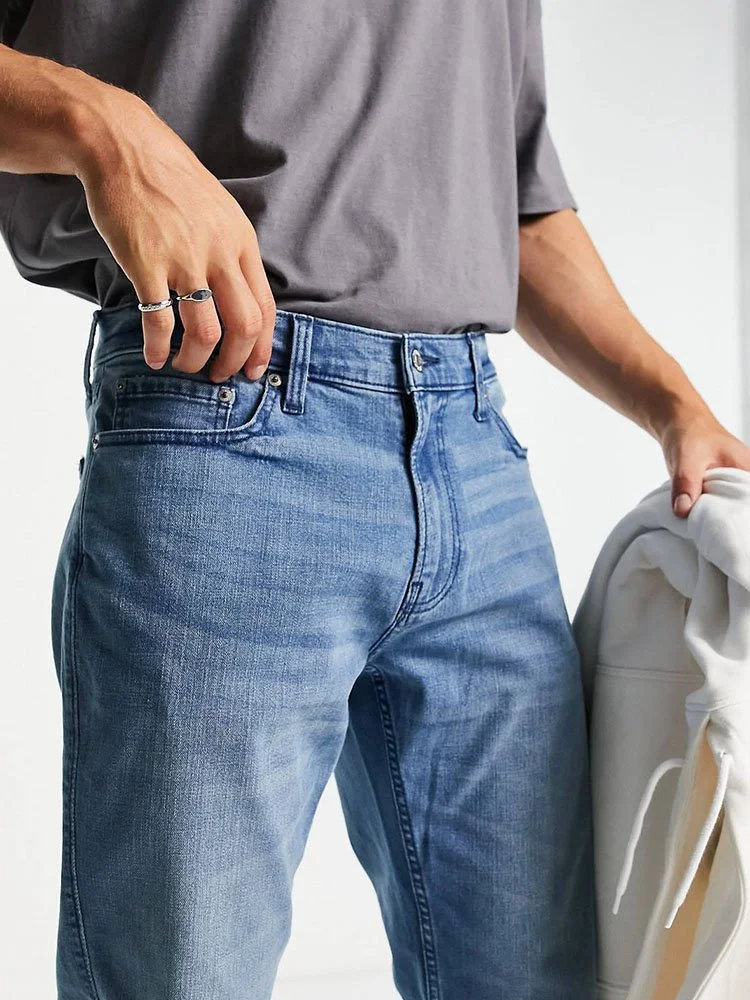 Diseñados con corte suelto en la cadera y los muslos, estos jeans están confeccionados en denim con lavado medio brillante con la elasticidad de Hollister Epic Flex, arrugas y sectores decolorados, diseño de cinco bolsillos y bolsillo trasero con bordado icónico.