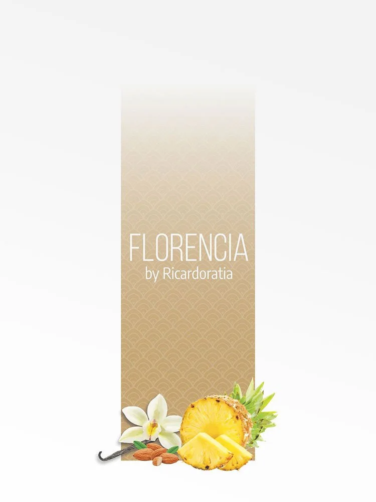 Florencia es un viaje olfativo al corazón de la naturaleza, donde convergen el frescor y la dulzura. Comenzando con notas luminosas de bergamota y toques verdes, esta fragancia revela rápidamente un corazón vibrante de melón, ámbar, piña y una dulzura envolvente.