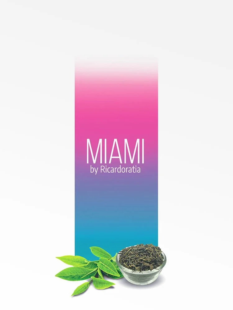El aroma del té verde remojado tibio. Miami es célebre por su aroma único, refrescante y sutil.