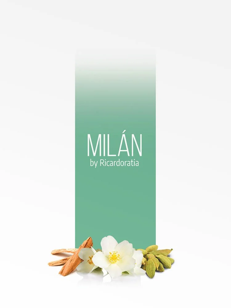 Una fragancia cálida y sensual con cardamomo, sándalo, jazmín, madera rubia, lirio, ambroxan, pachulí y almizcle de cachemira.