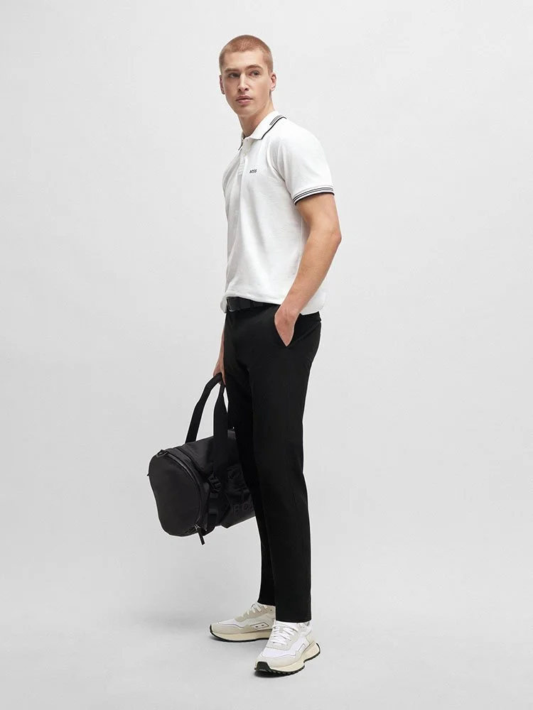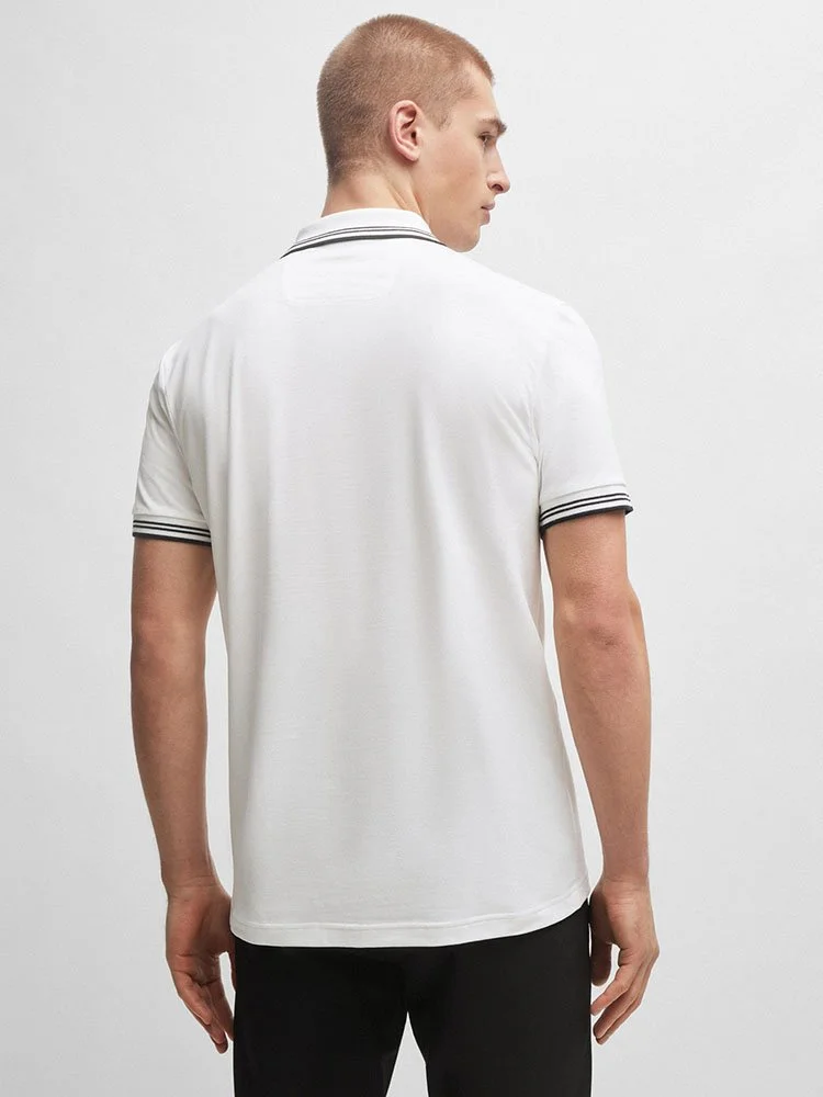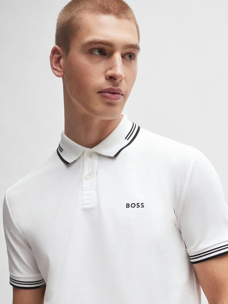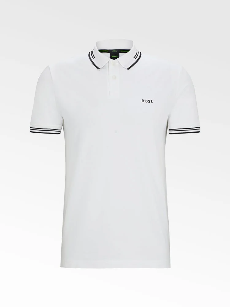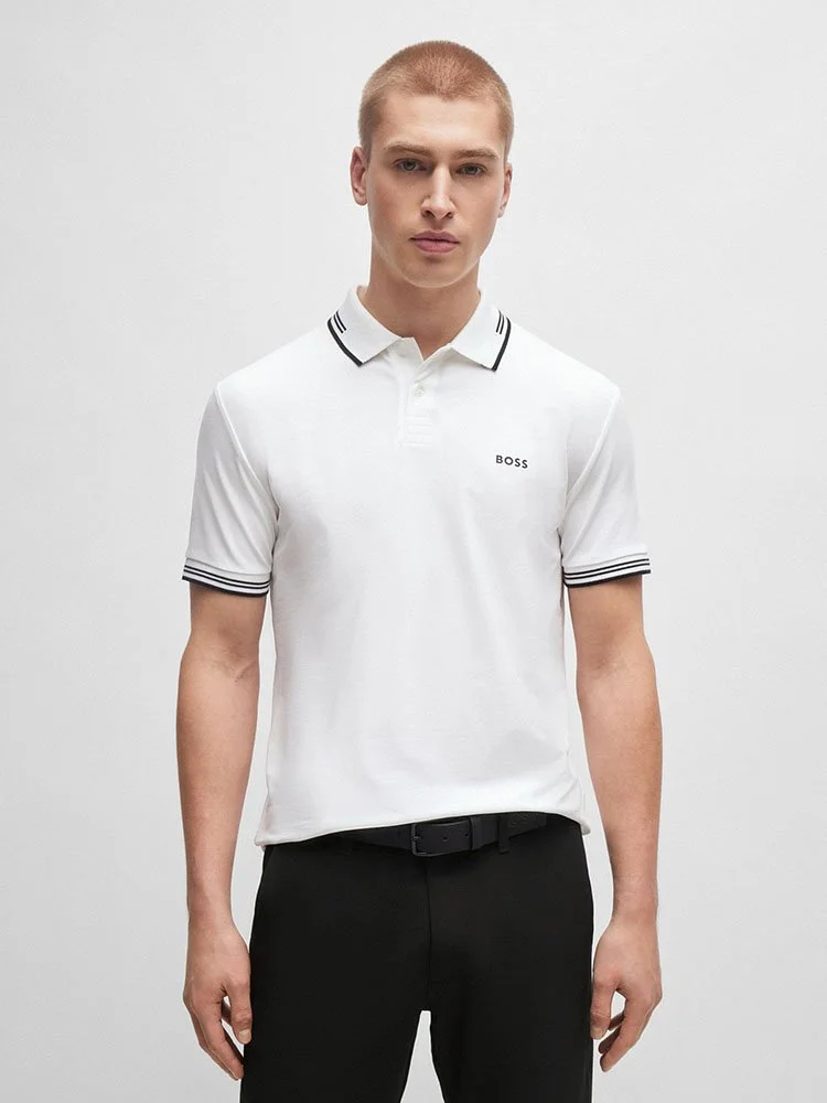 Chemise contemporáneo con un corte definido, confeccionado en algodón elástico con detalles de rayas en cuello y mangas y logo pequeño de la marca.