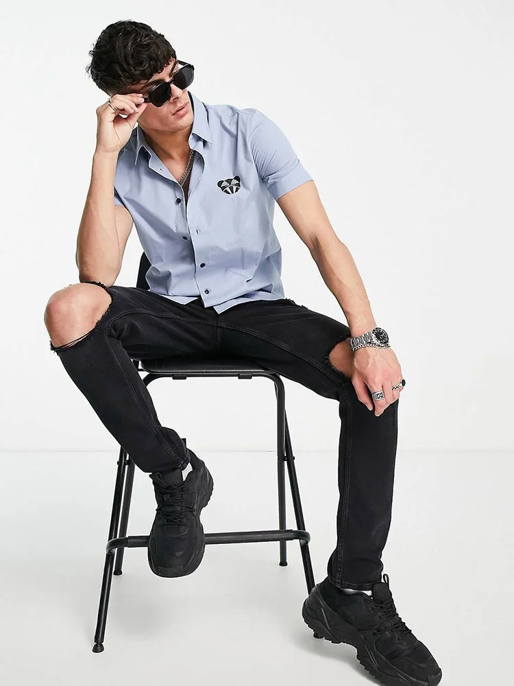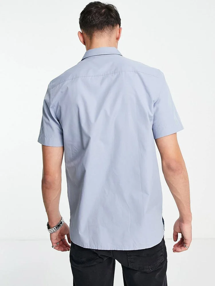 Camisa para caballeros de la marca Hugo Boss, con cuello italiano, con botones, estampado en contraste en el pecho y manga corta.