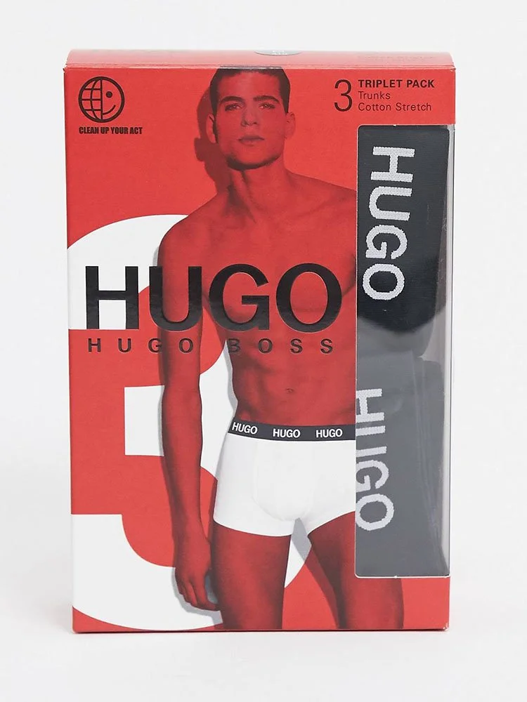 Pack de tres unidades de bóxers de la marca HUGO BOSS con cintura elástica, detalle de logo y diseño ceñido.