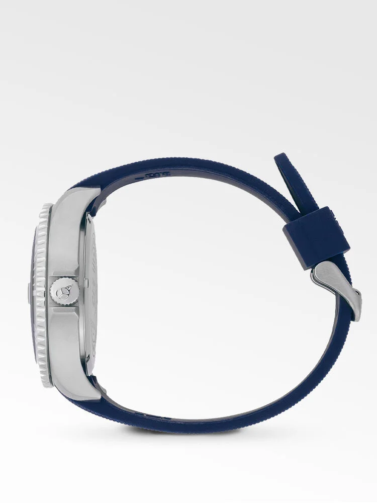 Este reloj azul masculino y robusto con detalles en naranja le da un estilo único a tus atuendos cotidianos. Gracias a su esfera de color azul intenso con acabados en acero y su correa de silicona, este reloj embellecerá tu muñeca con un toque moderno y sofisticado.