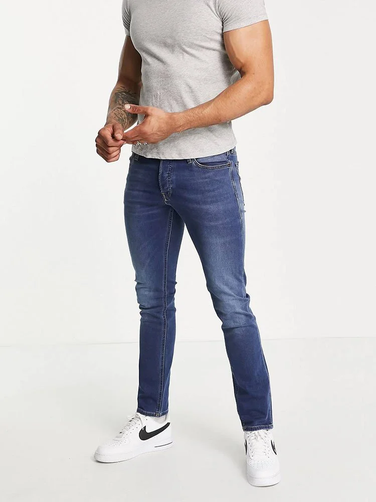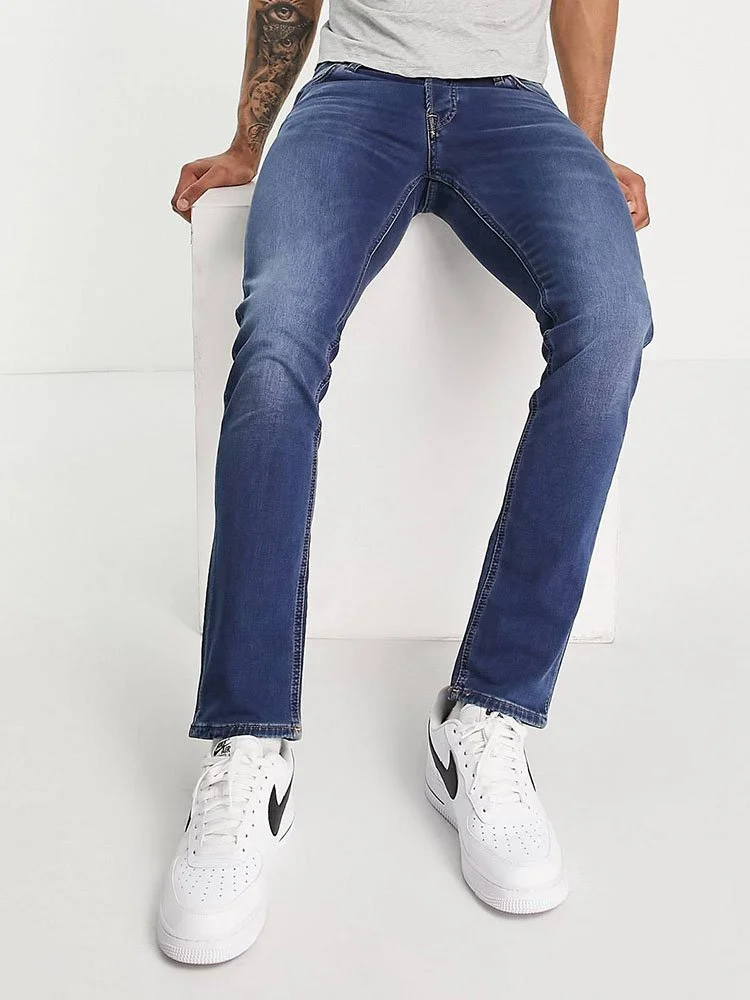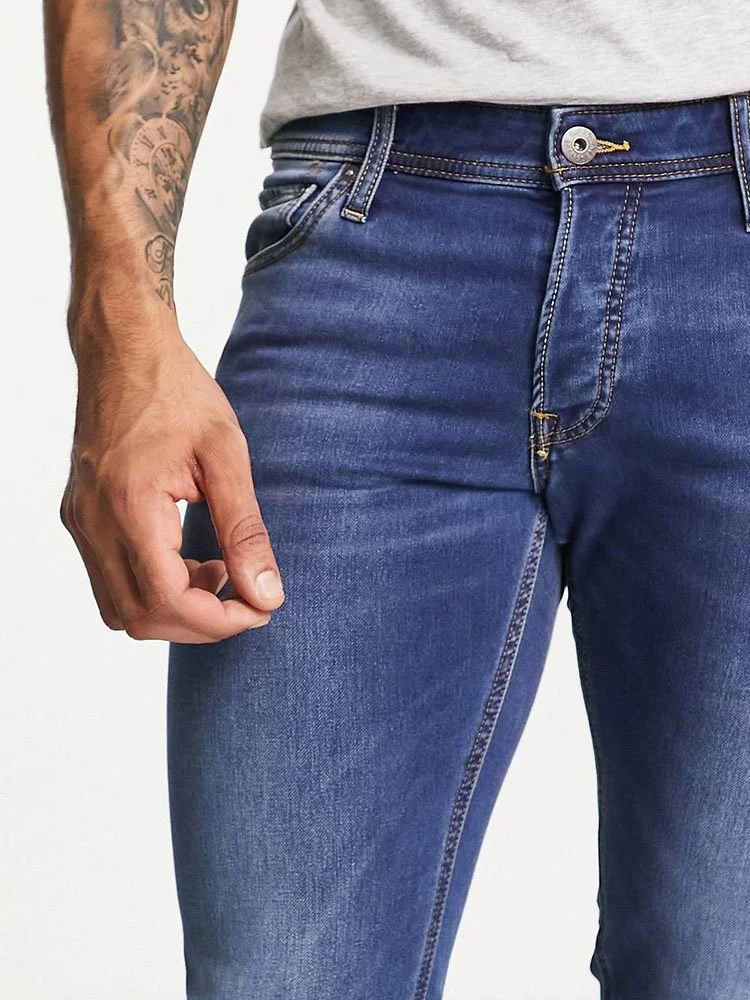 Jeans para caballeros, de corte slim de Jack & Jones, con trabillas para el cinturón y bolsillos funcionales.