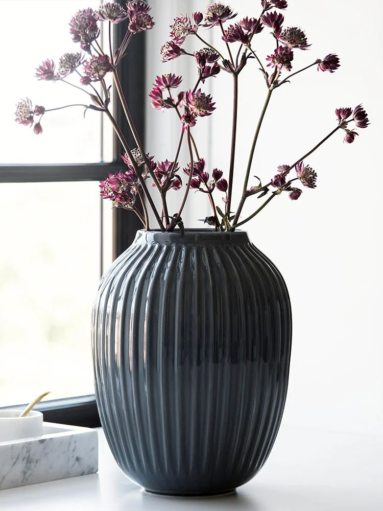 Los colores, la funcionalidad y el diseño han contribuido al éxito masivo de la gama Hammershøi. El elegante florero está inspirado en las obras originales del reconocido artista Svend Hammershøi de principios del siglo XX, una historia que ha ayudado a que la gama Hammershøi toque la fibra sensible de muchas personas amantes de la narración original. Los surcos icónicos y cuidadosamente diseñados contrastan con un lenguaje suave, lo que le da al diseño una calidad equilibrada y orgánica, lo que permite combinar la gama Hammershøi con otros diseños en el hogar moderno.