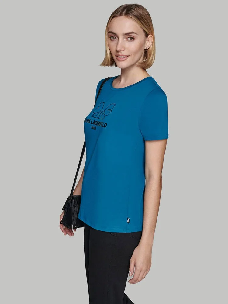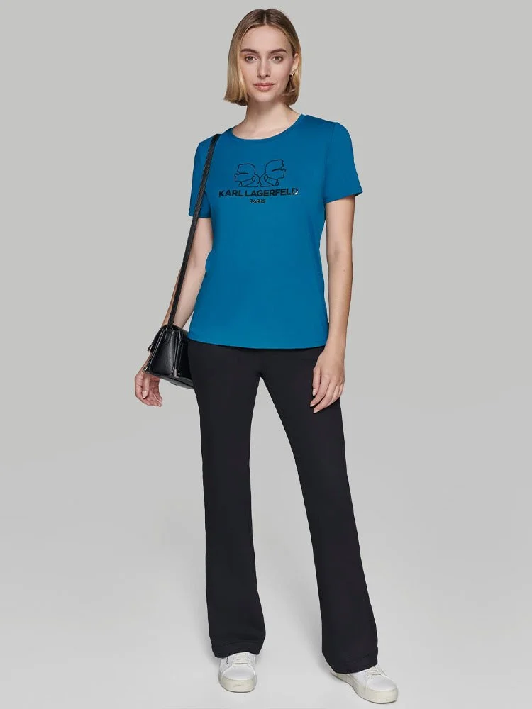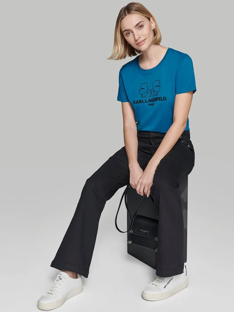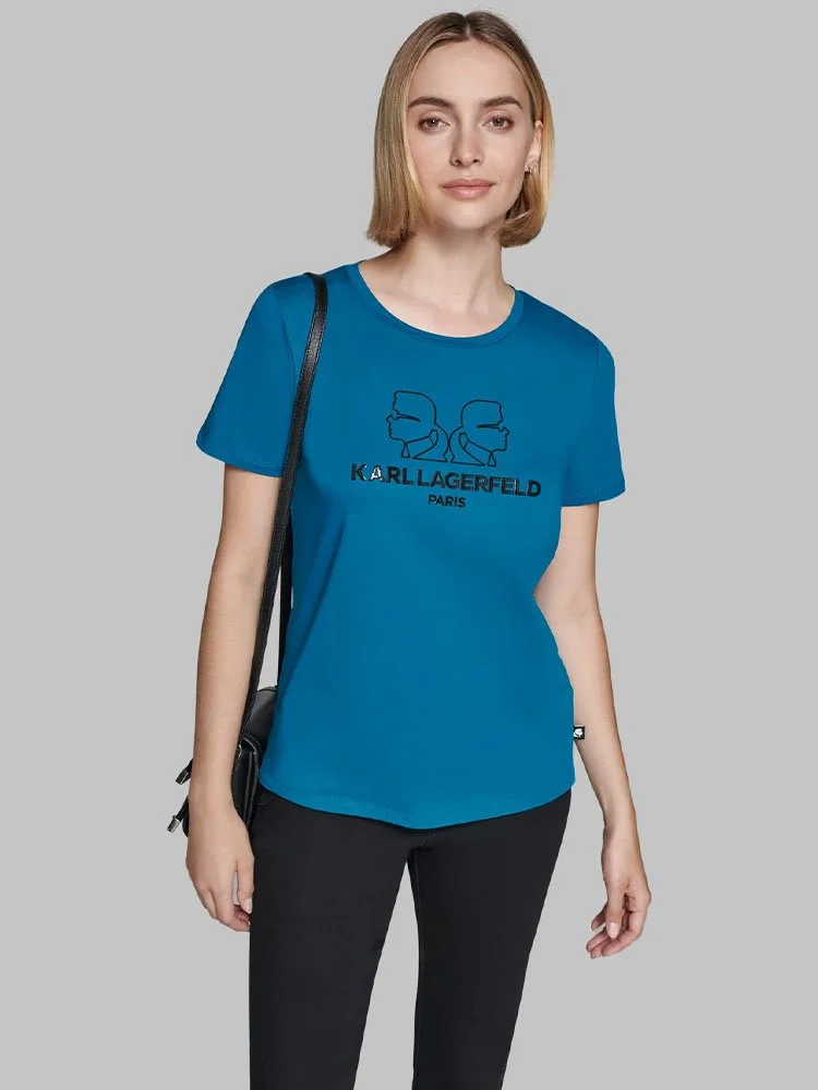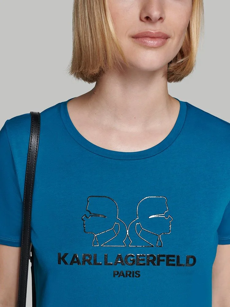 Esto T-Shirt con el logotipo Karl Double Head de Karl Lagerfeld es un icono moderno que combina el estilo característico de Lagerfeld con una silueta atemporal. Llévala para añadir un toque de lujo a tus looks diarios y llamar la atención dondequiera que vayas.