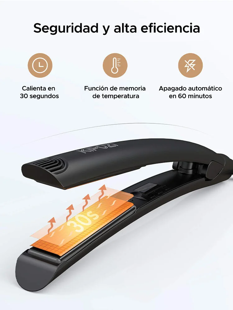 Plancha alisadora iónica de cerámica: está equipada con tecnología PTC y placas de cerámica que distribuyen el calor de manera uniforme sin dañar el cabello y la punta fría está equipada con tecnología de protección térmica que proporciona un aislamiento térmico del 100%.