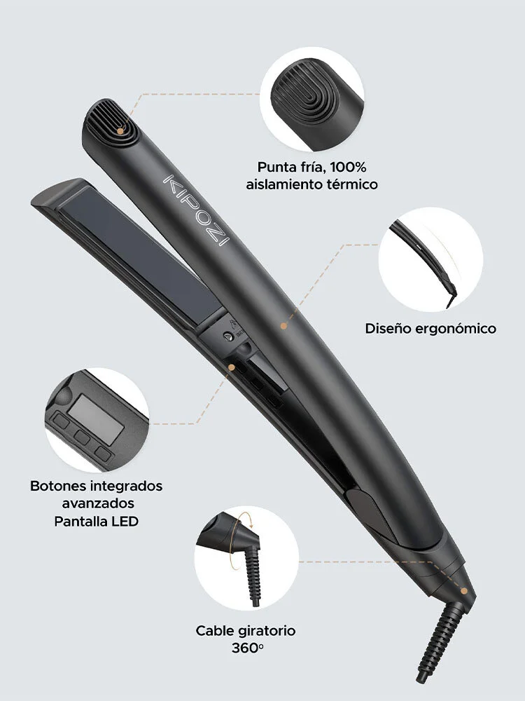 Sea un estilista propio: el diseño ergonómica ayuda a eliminar la fatiga de la mano y aumenta la flexibilidad del peinado. La pantalla digital mostrará la temperatura actual en cualquier momento; Diseño de cable giratorio de 360 grados para mayor comodidad; la función de apagado automático de 60 minutos apagará la unidad incluso si se olvida.