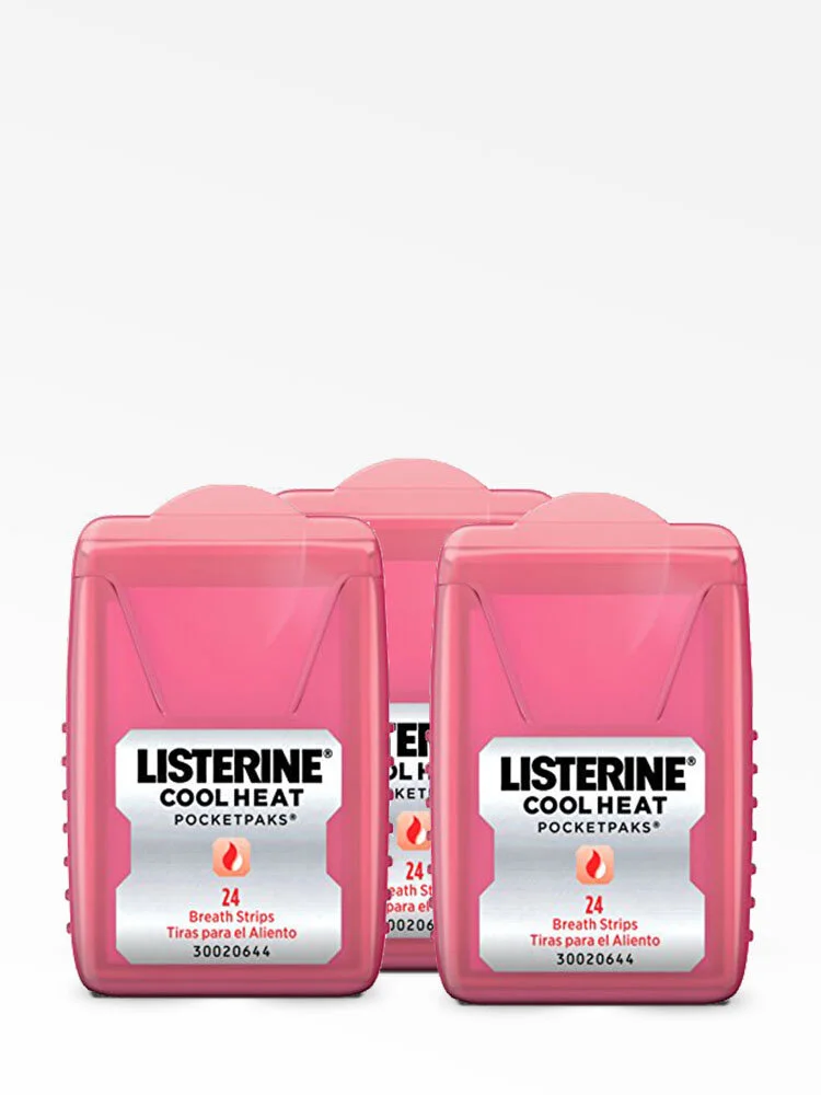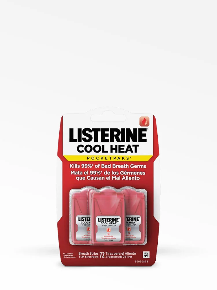 Esta oferta incluye 3 contenedores de Listerine Pocketpaks Cool Heat para un total de 72 Láminas de protección y frescura!