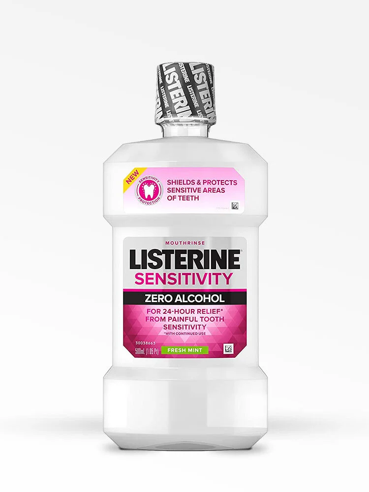 LISTERINE® Sensitivity es un colutorio de uso diario que se distingue por su tecnología de oclusión con cristales de oxalato potásico. Protege físicamente los nervios expuestos para aliviar la sensibilidad en profundidad. Sin alcohol.