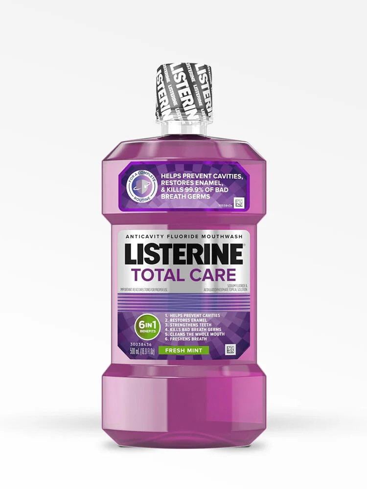 La protección más avanzada y completa de LISTERINE® para una salud bucal completa. Gracias a la acción combinada de los aceites esenciales con el flúor y el cloruro de zinc de este enjuague bucal, LISTERINE® Cuidado Total garantiza una limpieza profunda y una protección completa que aporta 6 beneficios para una salud bucal completa.