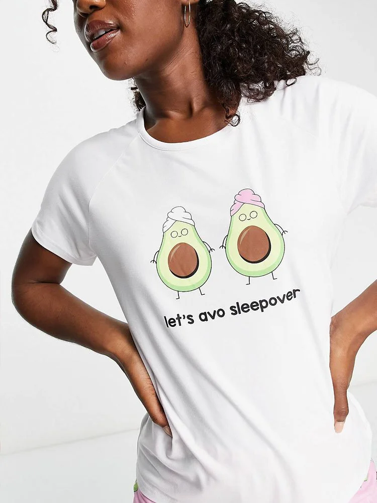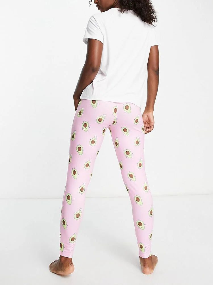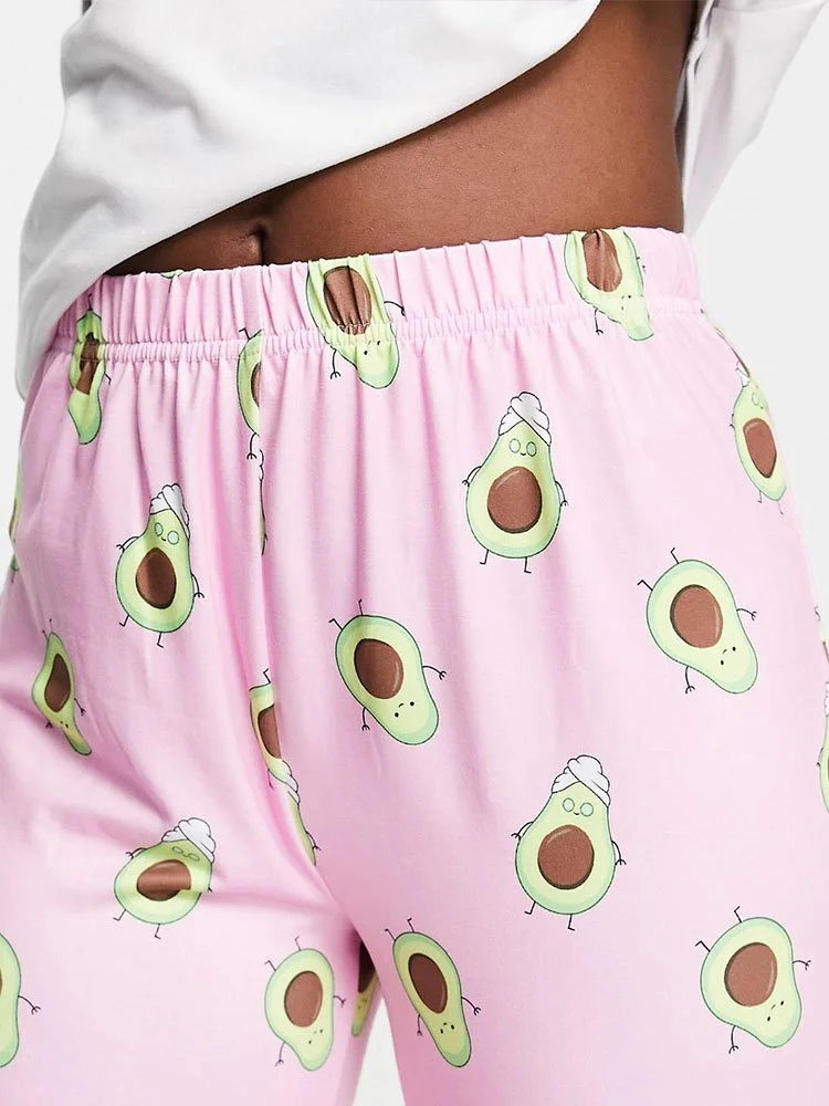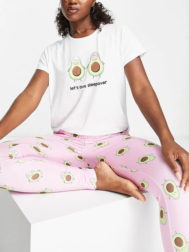 Conjunto de pijama compuesto por camiseta y pantalón con estampado de aguacate.