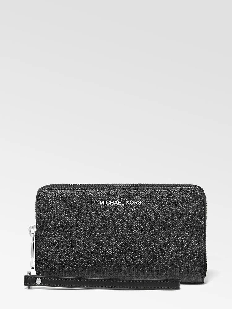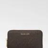Viajar ligero ahora es más fácil. Este elegante accesorio, confeccionado en lona con el estampado característico de Michael Kors, cuenta con una correa desmontable, cierre con cremallera y herrajes pulidos para un acabado lujoso.