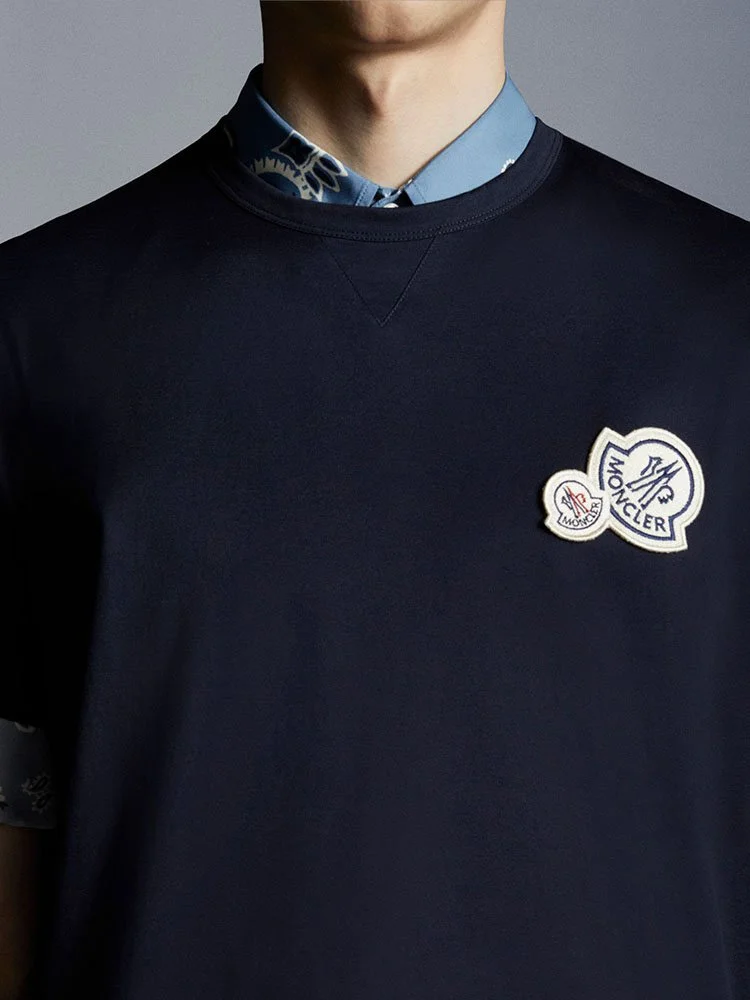 Clásica y versátil, esta camiseta está confeccionada con un suave jersey de algodón. El estilo atemporal de cuello redondo y manga corta adornada con dos parches con el logotipo en fieltro de la prestigiosa marca Moncler.
