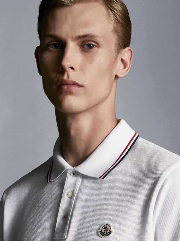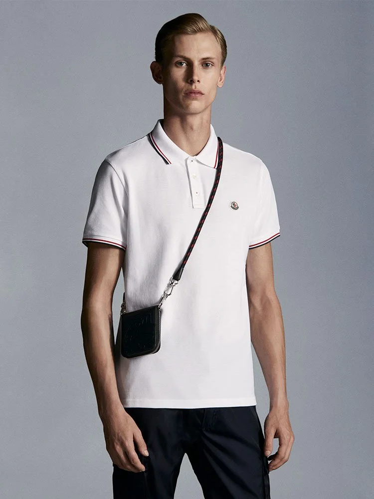 Esta chemise para hombre representa un diseño atemporal adornada con detalles tricolores alusivos a la prestigiosa marca francesa de lujo Moncler.