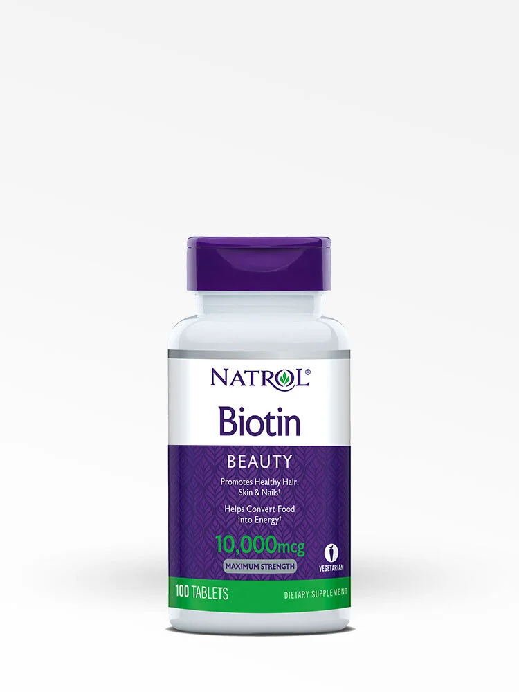 Biotina 10000 mcg de Natrol es una fórmula de alta potencia que proporciona apoyo alimenticio para la salud del cabello y las uñas, así como la producción de energía, en una deliciosa, rápida disolución de tabletas.