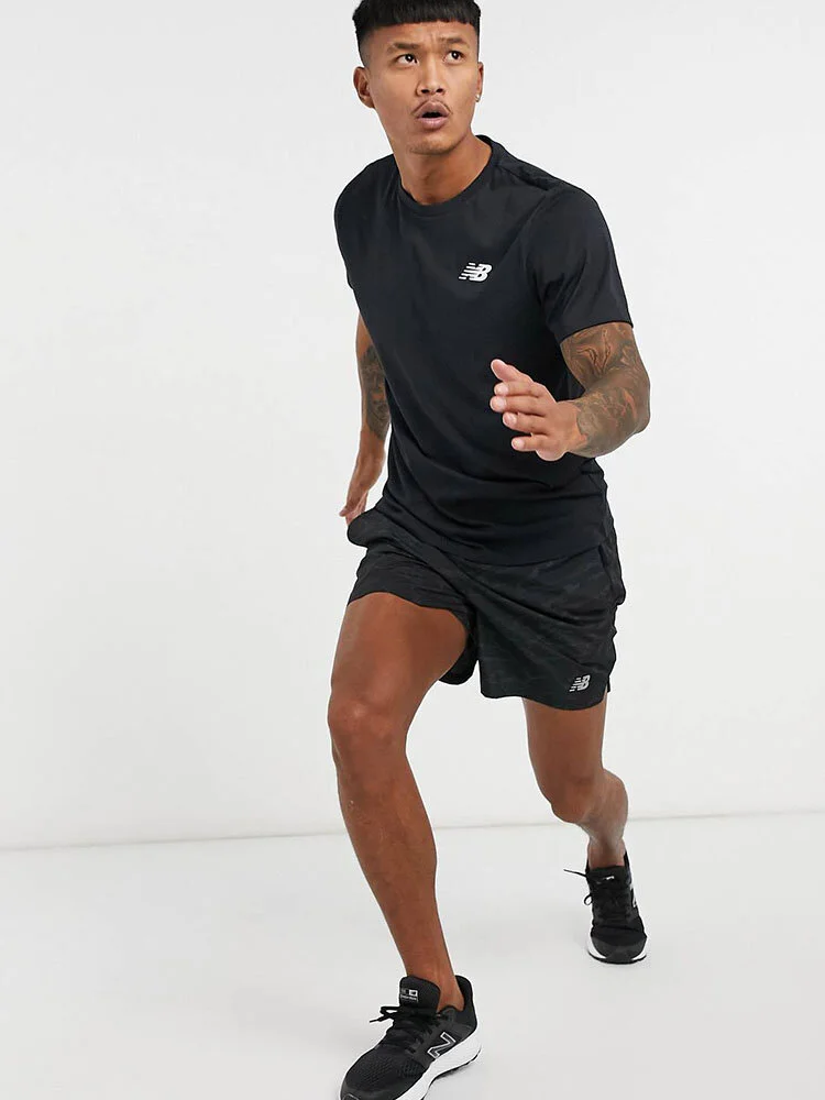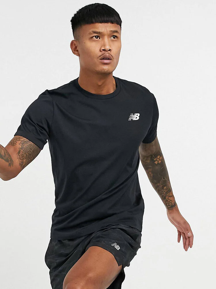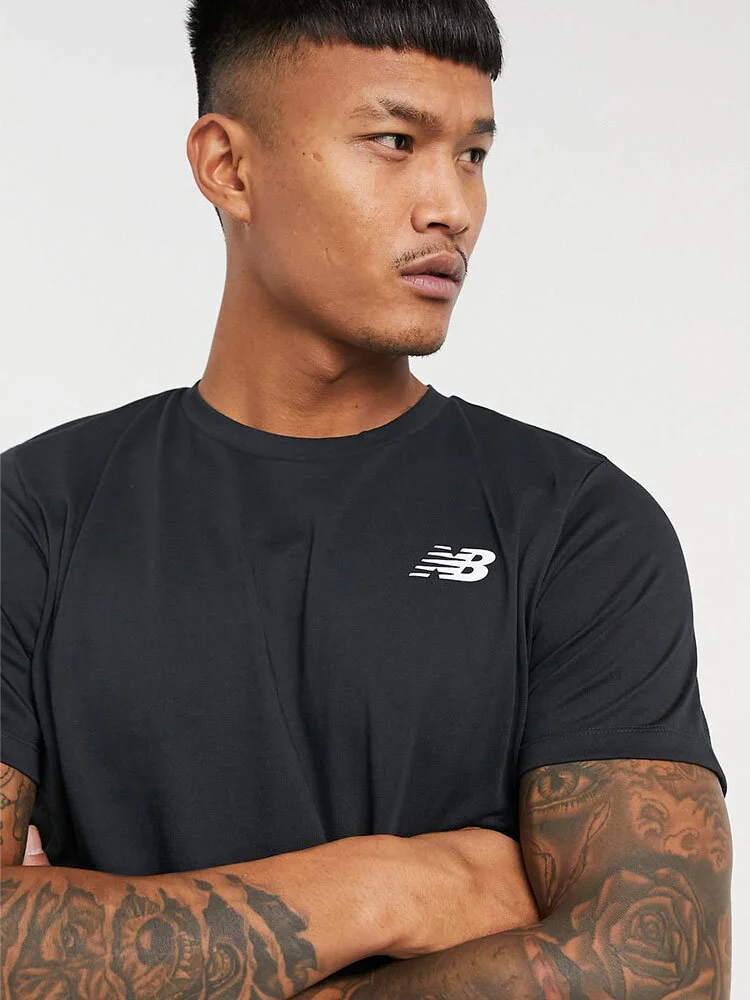 T-Shirt deportiva de New Balance con un logotipo clásico estampado en la parte delantera. Camiseta de manga corta cortada en algodón de corte estándar con cuello redondo.