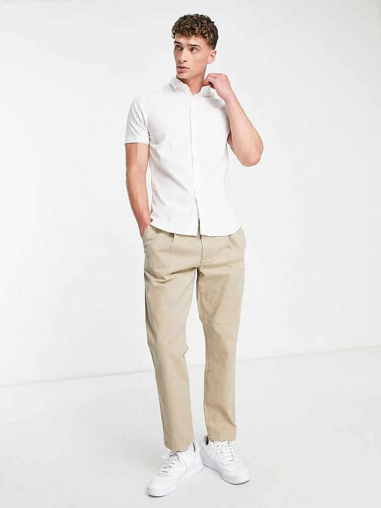 Camisa de New Look con cuello italiano, tapeta con botones y manga corta.