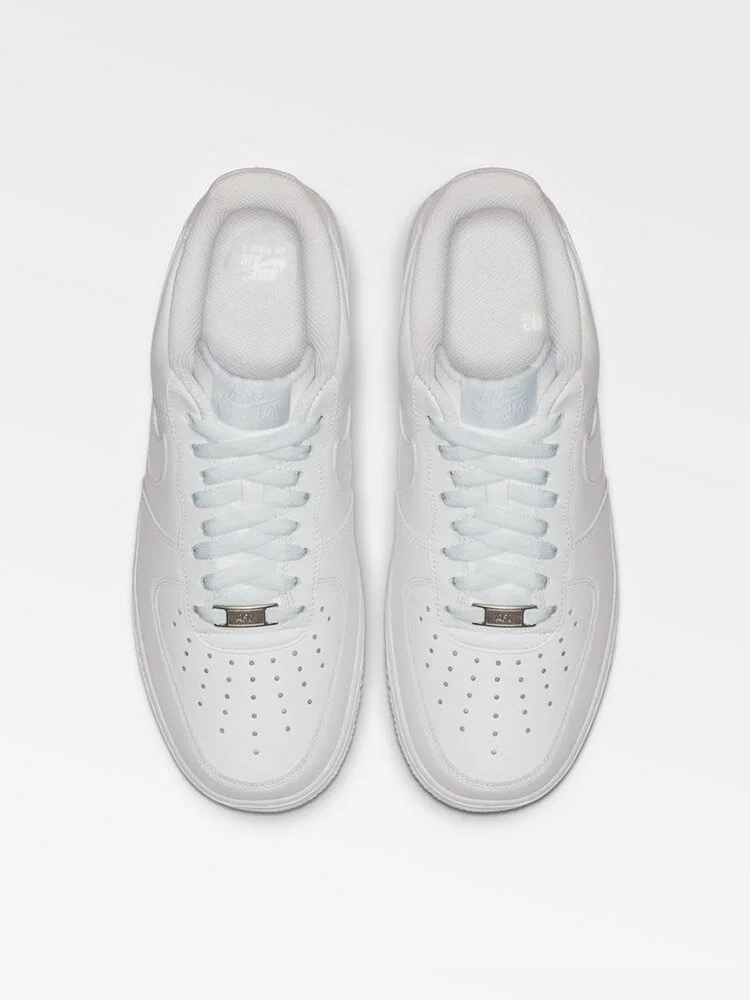 El fulgor sigue vivo en las Nike Air Force 1 ’07, un modelo original de baloncesto que introduce un nuevo giro a su ya característica piel impecable en una combinación de colores en blanco para un look increíble tanto dentro como fuera de la cancha.