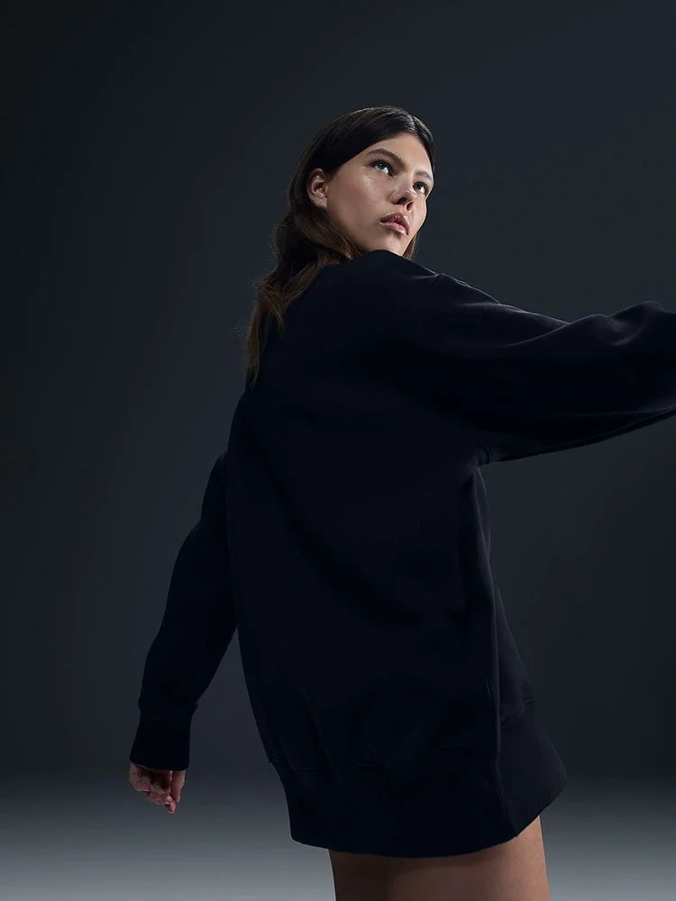 Descubre esta nueva prenda relajada, pero elegante, cómoda y versátil. Este clásico sweater te ayuda a mantener la comodidad durante todo el día, gracias al tejido Fleece de densidad media que se siente suave, pero definido. Además, te verás a la moda gracias a su canalé más alto y el ajuste oversized.