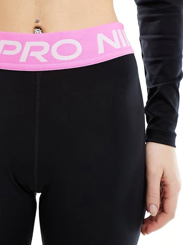 Los leggings Nike Pro están hechos con tela absorbente de sudor y malla a lo largo de las pantorrillas para mantener la frescura y transpirabilidad. La tela suave y elástica se mueve contigo mientras corres sprints, haces desplantes y te estiras.