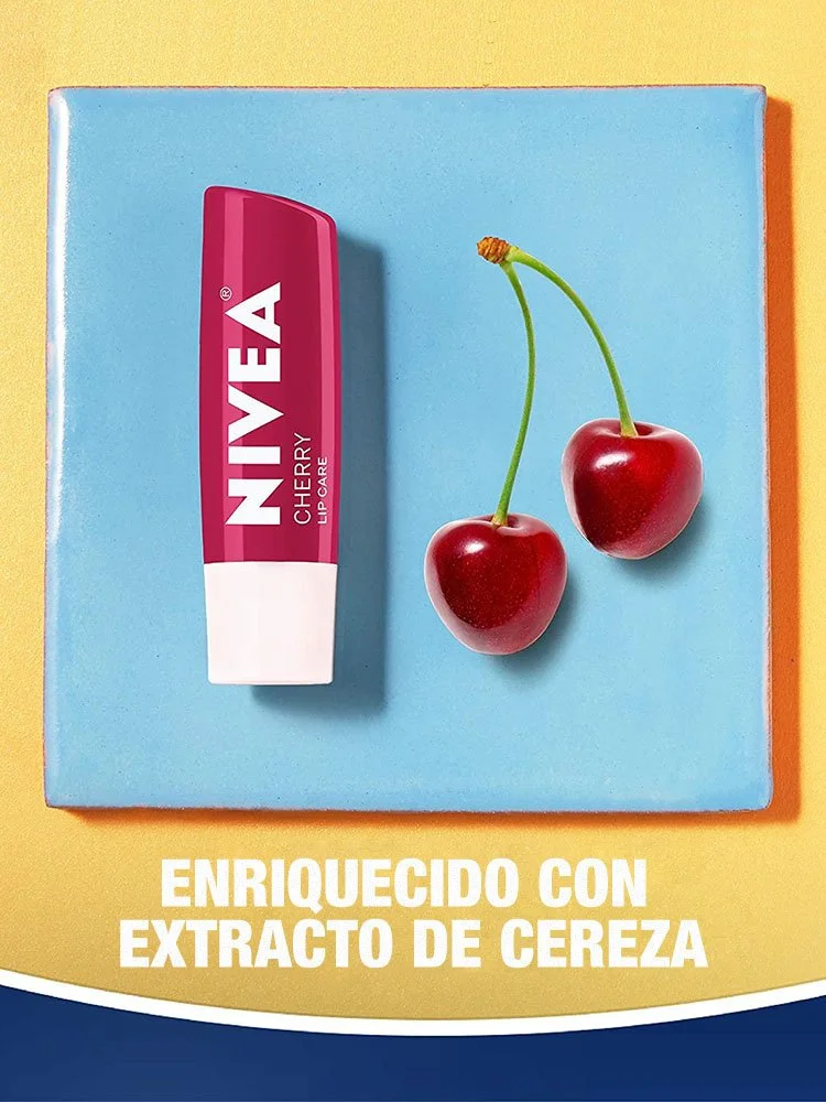 Realza la belleza natural de tus labios con NIVEA Cherry Lip Care. Un tinte de color e ingredientes nutritivos brindan a los labios el cuidado que se merecen.