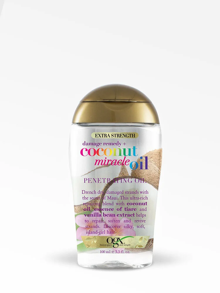Aceite reparador para cabello seco y tratado químicamente. Ayuda a controlar el frizz, hidratando profundamente y dando brillo al cabello. Formulado con aceite de coco, esencia de extracto de tiare y vainilla.