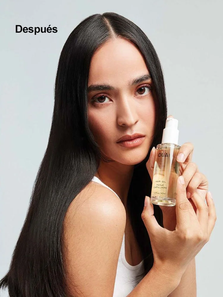 Un aceite multitarea que suaviza el encrespamiento y sella las puntas abiertas para un acabado brillante y superliso. Los aceites de Galanga africana, Ama y Borraja asiática evitan que el color se desvanezca y protegen el cabello de los daños del calor.
