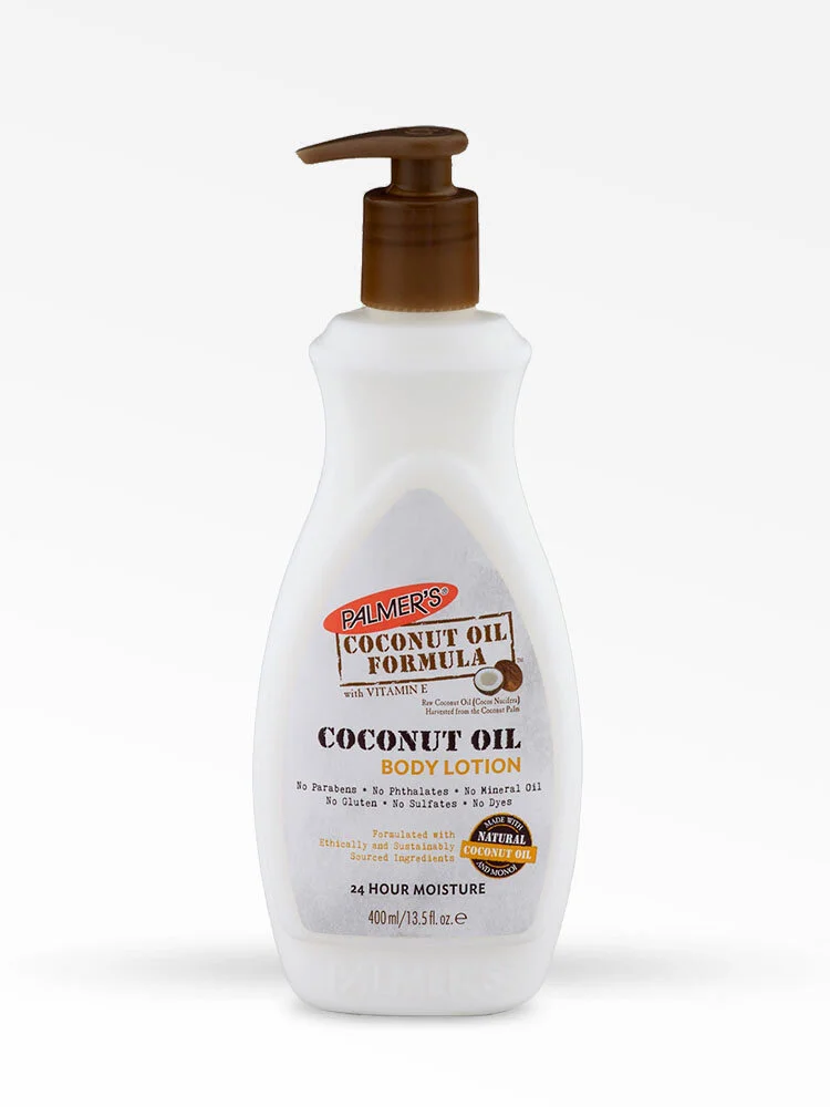 El loción corporal de aceite de coco de Palmer contiene altos niveles de ácidos grasos y proteínas naturales que son esenciales para mantener la piel radiante y saludable.