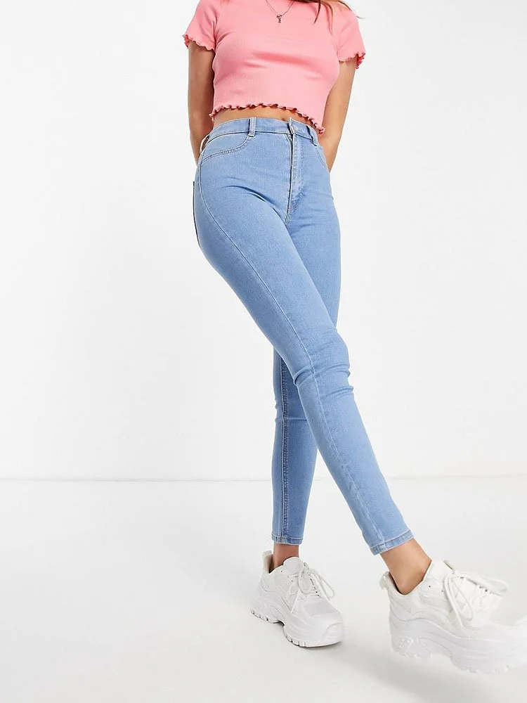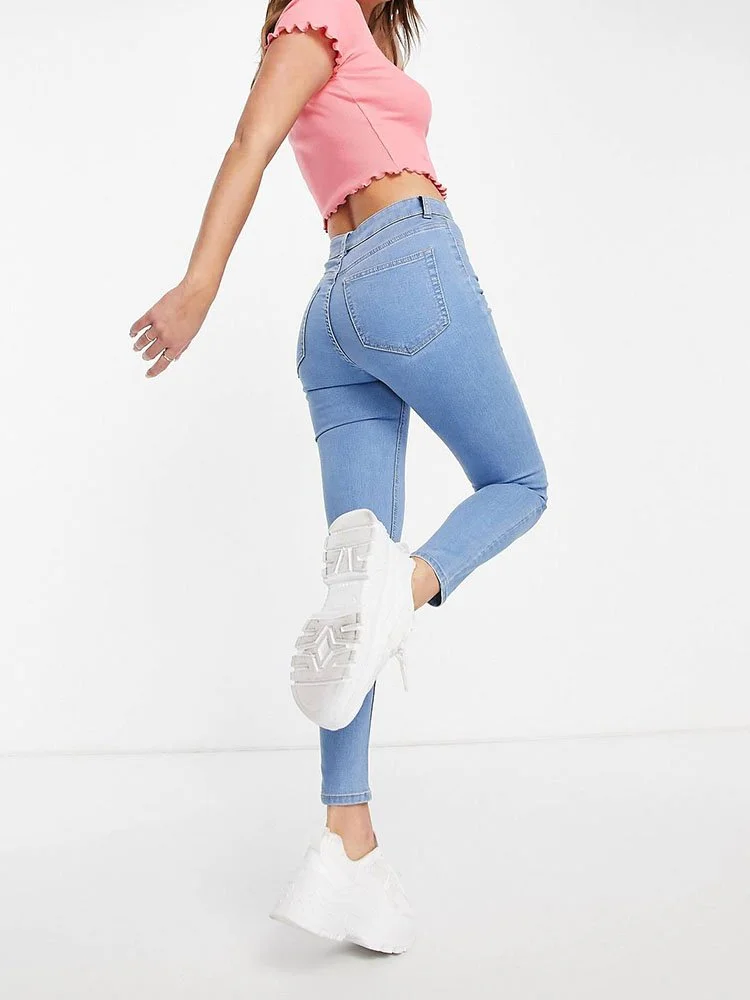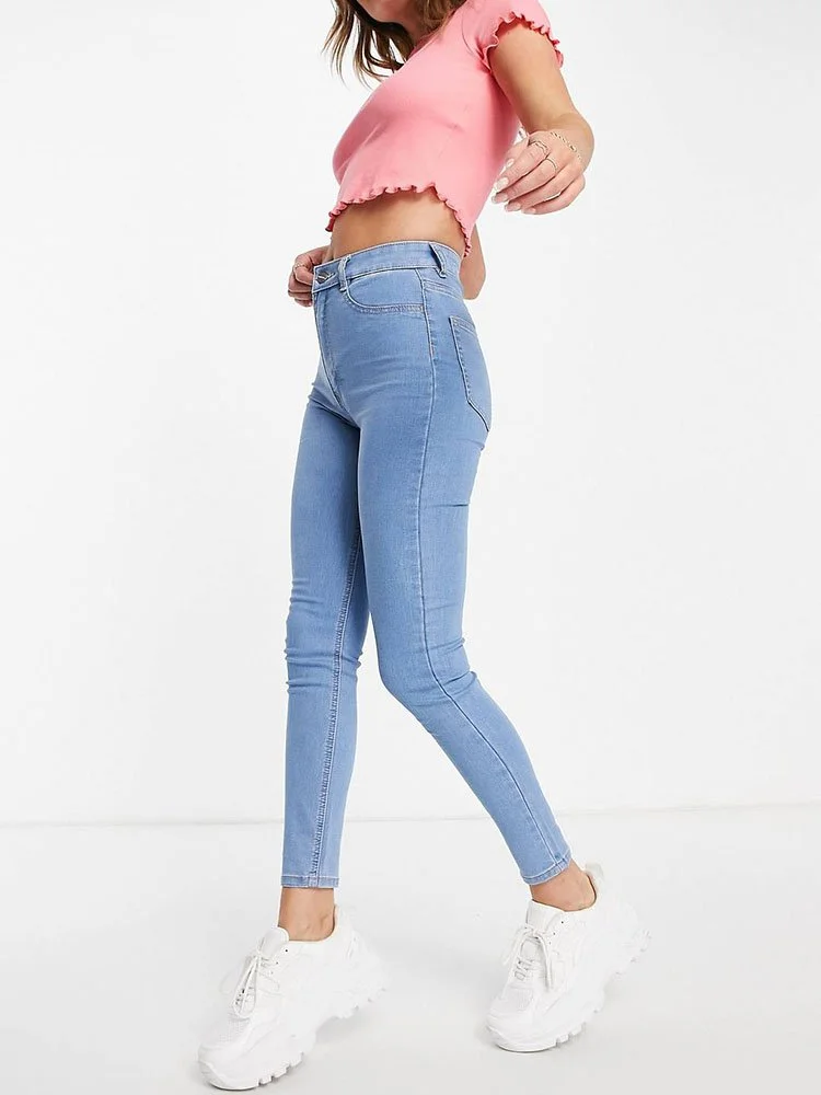 Jeggings de tiro alto con trabillas para cinturón, bragueta con cierre y cuatro bolsillos.