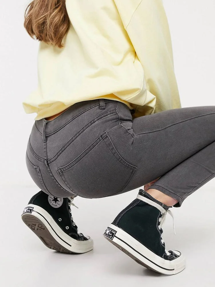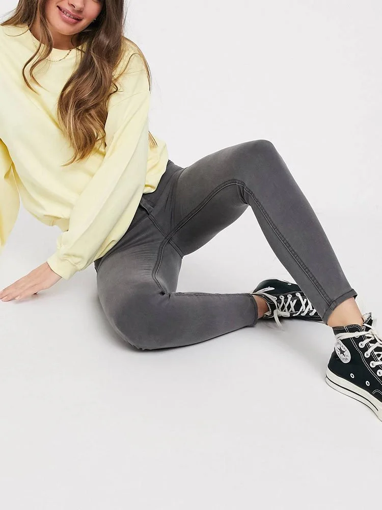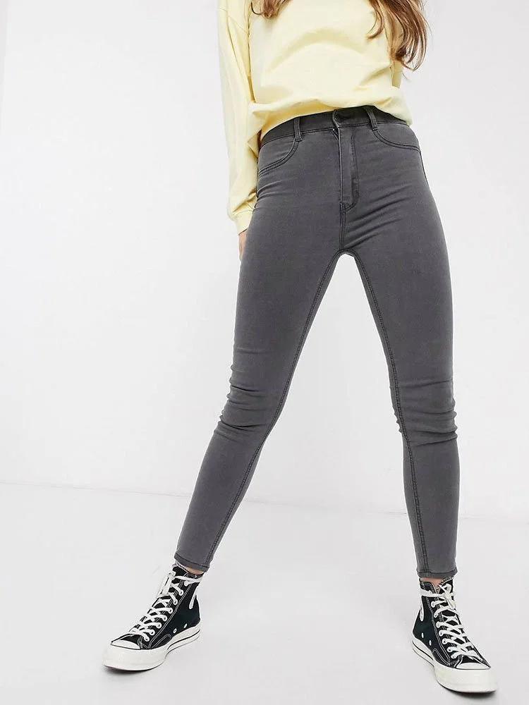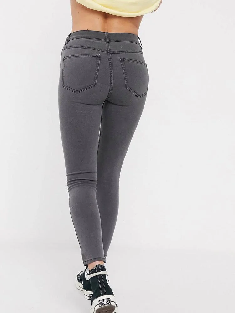 Jeggings con cintura de talle alto, trabillas para cinturón, bragueta con cremallera, bolsillo frontal cerrado, bolsillos traseros de parche y corte ajustado. Corte ceñido, regular en cintura.