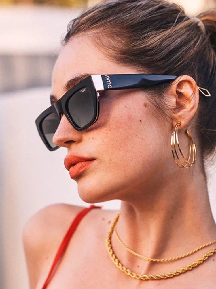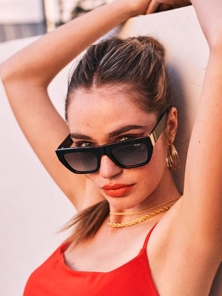 Estos anteojos de sol angostos cuentan con un marco de acetato con patillas anchas reforzadas, detalles dorados con el logotipo de la marca y detalles recortados. Además son lentes polarizados para ayudar a reducir el resplandor y mejorar la claridad en todos los momentos brillantes.