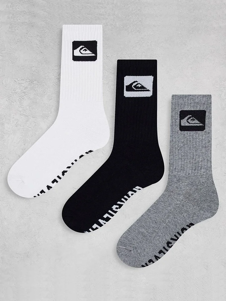 Paquete de tres pares de medias con piernas ajustadas y logo Quiksilver.