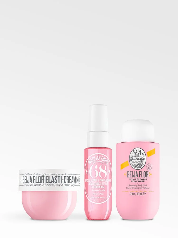 Beija Flor Elasti-Cream crema corporal hidratante 50ml (1.7 fl oz) | Brazilian Crush Cheirosa ’68 Splash 30ml (1 fl oz) | Beija Flor gel de ducha en crema con efecto humectante 90ml (3.0 fl oz)