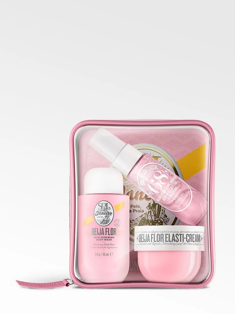 Todo lo que necesitas para lucir una piel bonita en un solo envase. El lote cosmético Sol de Janeiro Beija Flor Jet Set contiene varios productos para ayudarte a crear o enriquecer tu rutina de belleza diaria, por lo que te encantarán tanto si te das un capricho como si se los regalas a tus seres queridos.