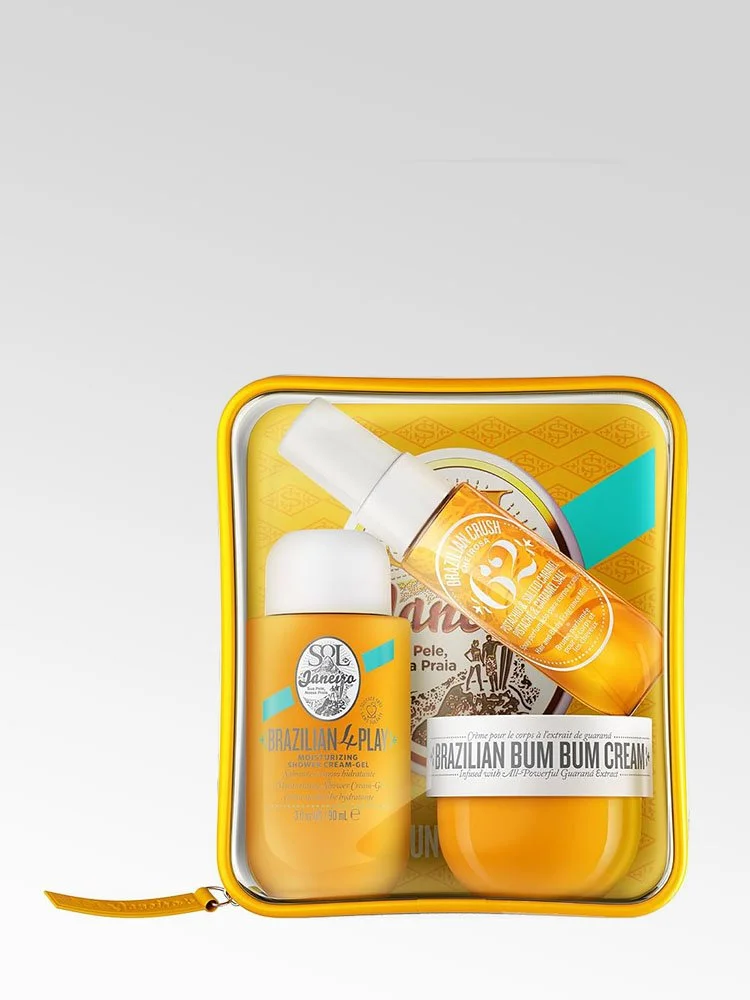 Todo lo que necesitas para lucir una piel bonita en un solo envase. El lote cosmético Sol de Janeiro Brazilian Bum Bum Jet Set contiene varios productos para ayudarte a crear o enriquecer tu rutina de belleza diaria, por lo que te encantarán tanto si te das un capricho como si se los regalas a tus seres queridos.