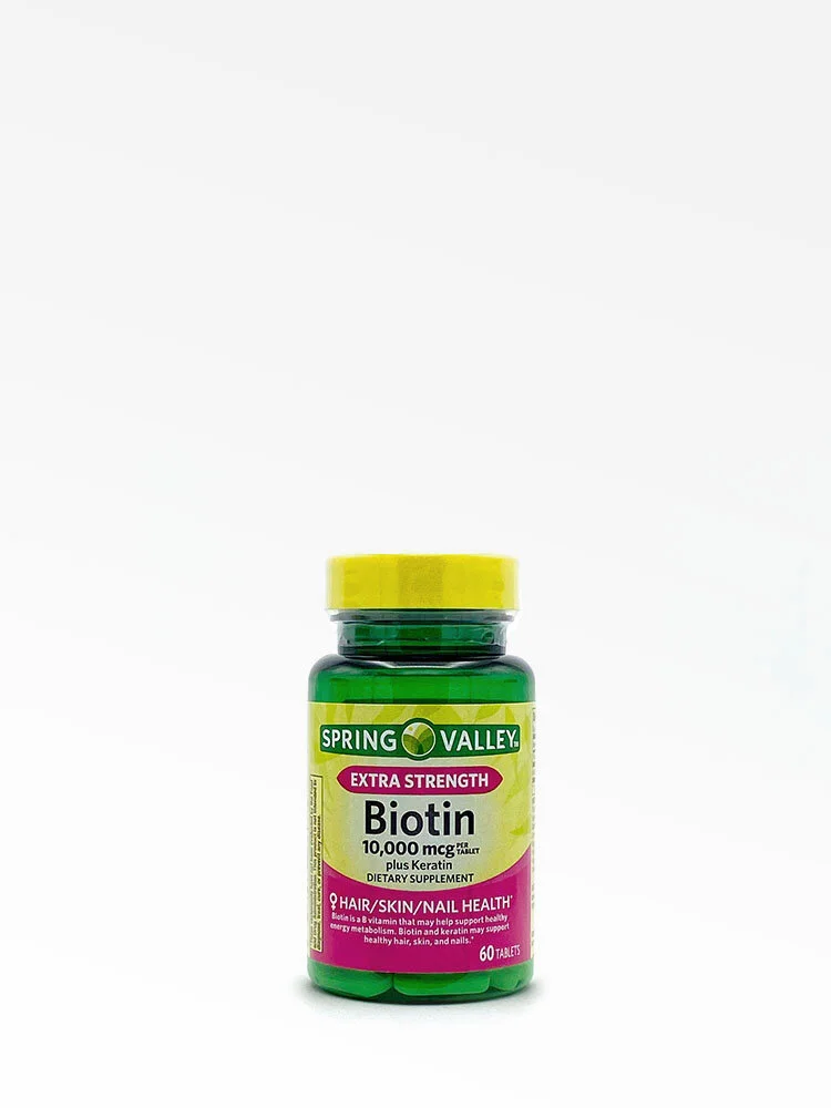 El suplemento dietético de biotin extra fuerte más queratina de Spring Valley, es un suplemento que apoya la salud del cabello, la piel y las uñas. La biotina es una vitamina B que puede ayudar a mantener un metabolismo energético saludable, y la combinación de biotina y queratina puede ayudar a mantener el cabello, la piel y las uñas saludables.